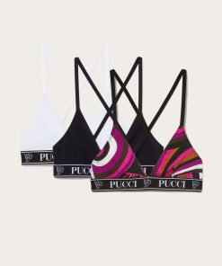 Pucci Accessories Underwear 3 Pack Triangle Bra | White & Black & Fuchsia Pink & Brown