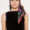 The Fontane print covers this silk-twill carré in bubbling spheres and splashing curves. The house moniker and intertwined fish motif complete the versatile design, which can be worn as a head covering, neck scarf, belt or sarong.