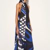 This scarf is covered in intricate Vivara and Iride prints rendered in vibrant fuchsia and rich mahogany hues. It’s cut from silk twill to an oversized bandeau silhouette and bordered with Pucci logos: note the house moniker and intertwined fish motif.