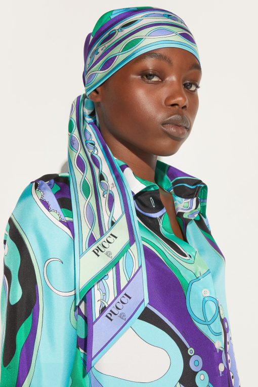 Pucci Accessories Iride Print Silk-twill Scarf | Green & Lilac