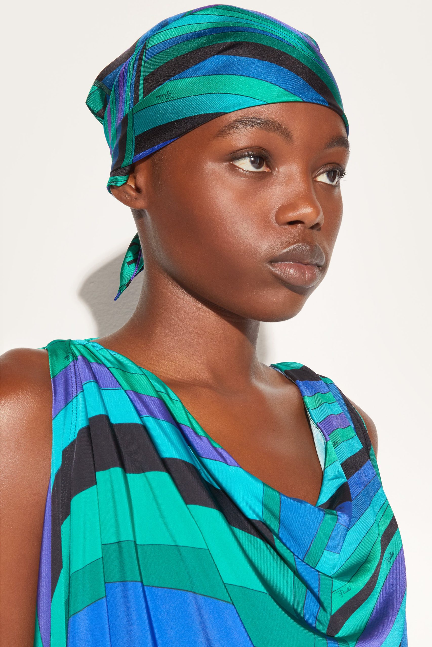 Can such a small and subtle accessory represent a great expression of style? Without a doubt. This printed silk twill scarf is a tribute to the iconic Iride print, reinterpreted in deep emerald hues. With its compact size, it’s the perfect complement to add a distinctive touch to any outfit. Tie it around your neck for a classic look, use it as a hair accessory or bag decoration-its versatility makes it a must-have for any wardrobe. A piece that celebrates the brand’s art of detail and timeless elegance.