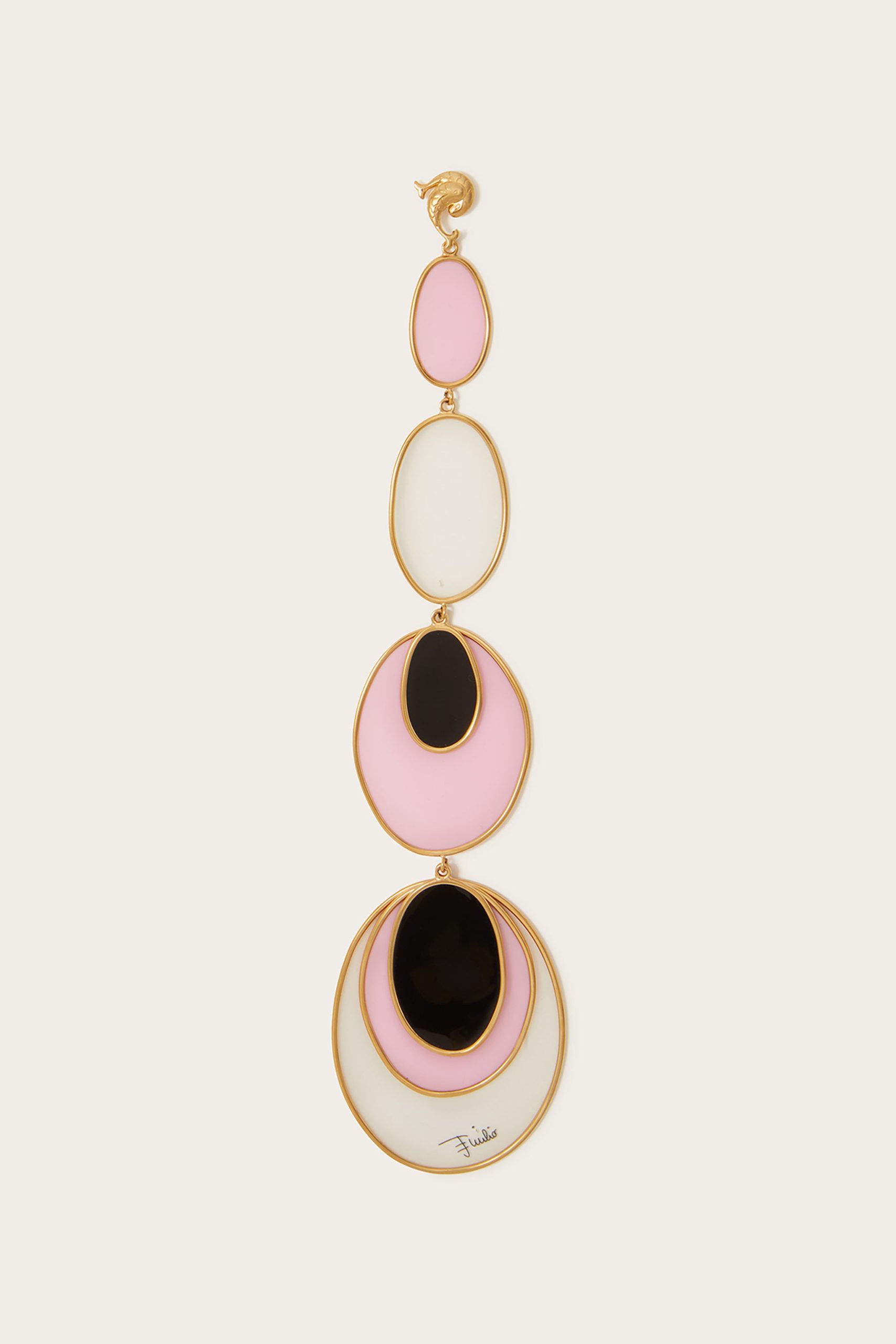 Pucci reinterprets iconic house codes, imagining the Bersaglio motif as concentric drops that cascade elegantly in this earring. The design is secured with a stud that takes the shape of the intertwined fish logo: a symbol introduced by Camille Miceli.