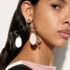 Sculptural, catching the light and catching the eye, these chandelier earrings are a piece of jewelry that tells a tale of history and innovation, a perfect meeting of sophistication and boldness. Made of brass with a shiny gold metal finish, they feature small, colorful dangling frames on the inside alternating with the Pesci-shaped charm that adds a touch of originality and symbolism. The nude color scheme gives the design a contemporary and delicate vibe. Worn to embellish an evening dress or to give a stylish twist to a more casual look, they will make any outfit sparkle with personality.