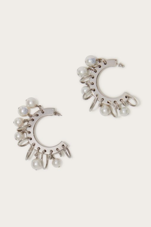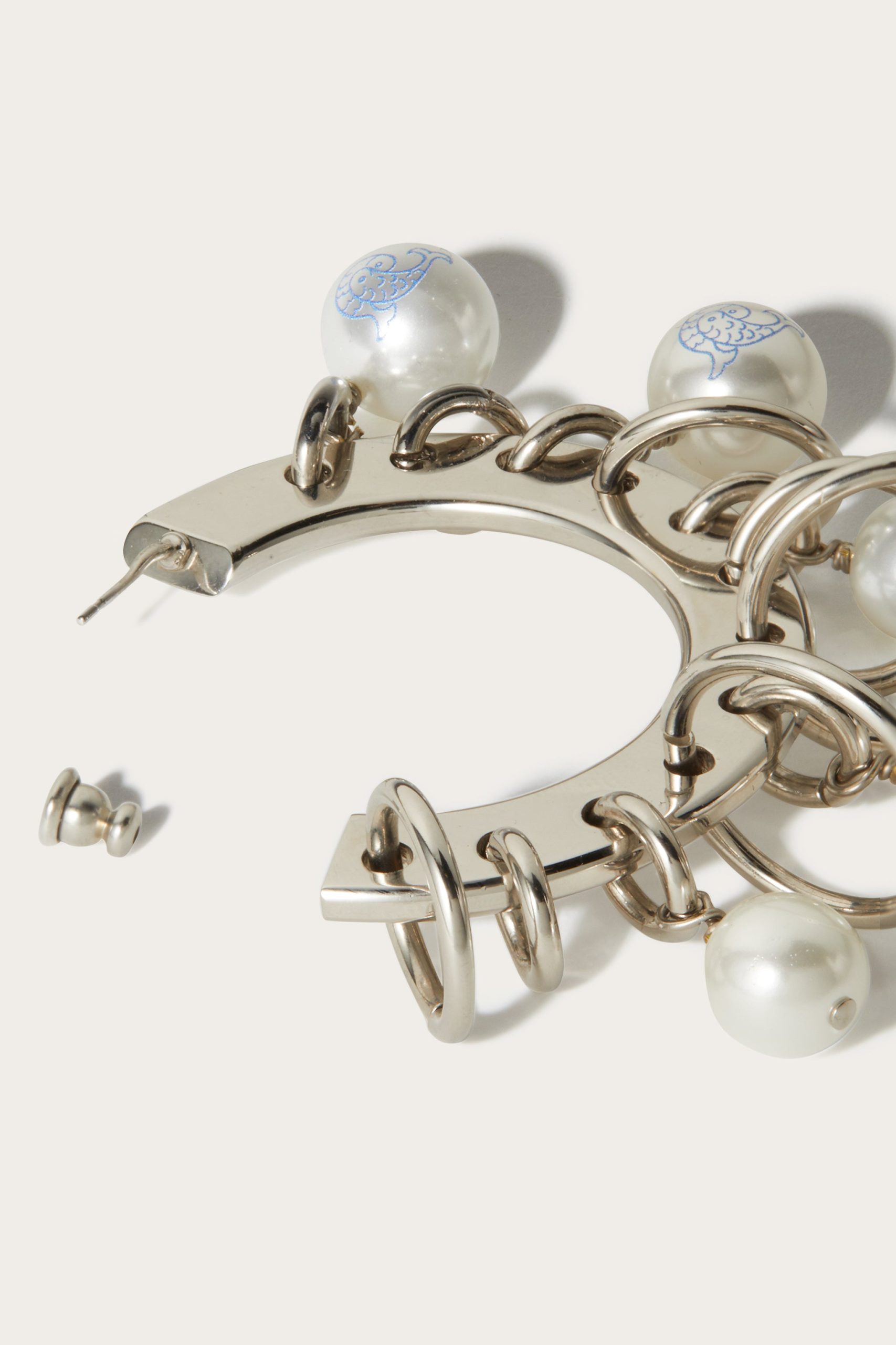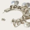 Showcasing Pucci’s playful approach to design, these hoop earrings are adorned with smaller dangling hoops in various sizes. They’re crafted from polished silver-tone metal and finished with faux pearls topped with the intertwined fish motif.