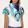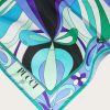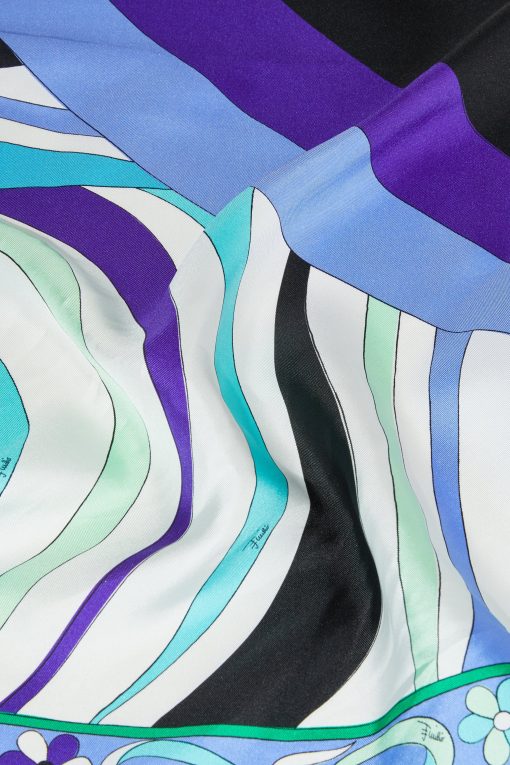 A timeless accessory that encapsulates all the essence of elegance and color of the Pucci world. This silk twill scarf, with its unique mix of prints in green and lilac tones, is the perfect detail to brighten any look.Versatile and sophisticated, it can be worn around the neck, tied in the hair or knotted to the bag for an unmistakable touch of class. A piece that speaks of style and personality, ideal for any occasion.