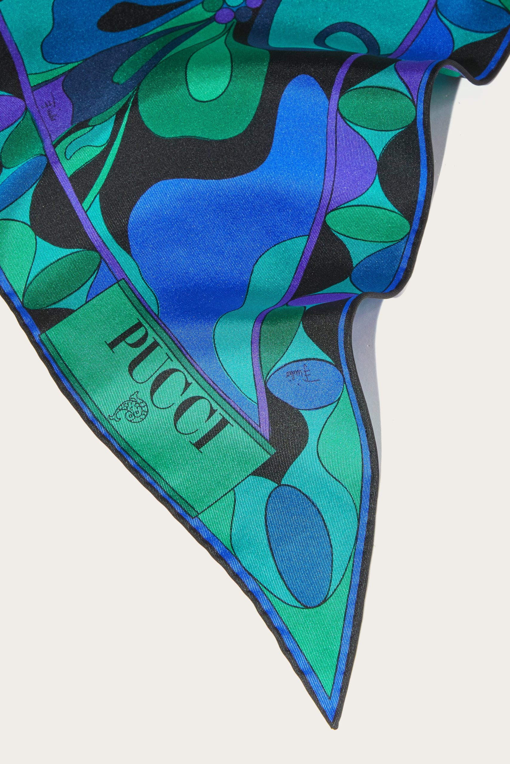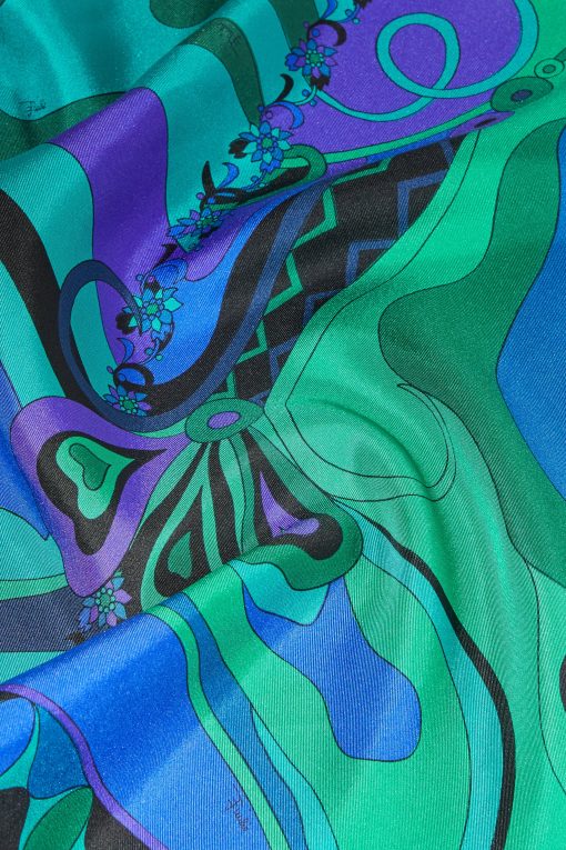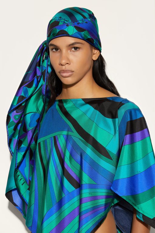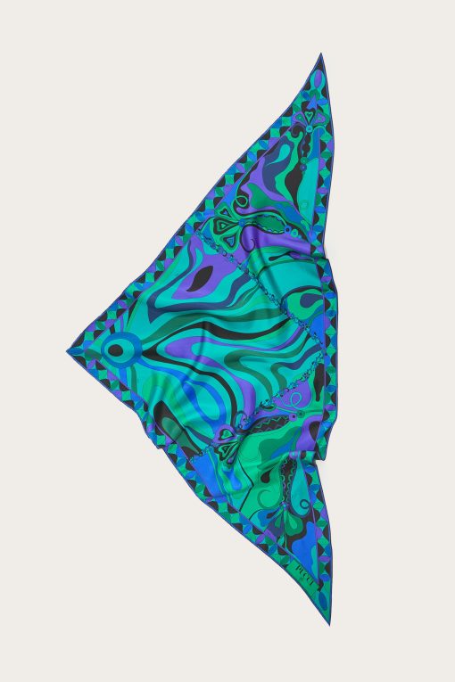 A timeless accessory that celebrates Pucci’s distinctive elegance and creativity. This printed silk twill triangle, in the iconic Marmo and Orchidee patterns in emerald, is a true masterpiece of style. Its versatility makes it perfect for wearing in different ways: around the neck, as a headband or tied to a bag for a refined touch. The softness and lightness of silk make it pleasant to wear, adding a luxurious accent to any outfit.