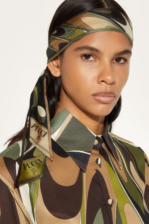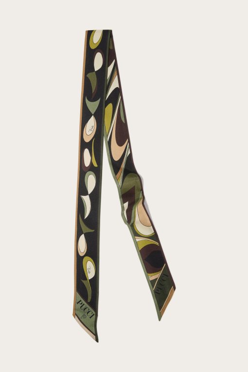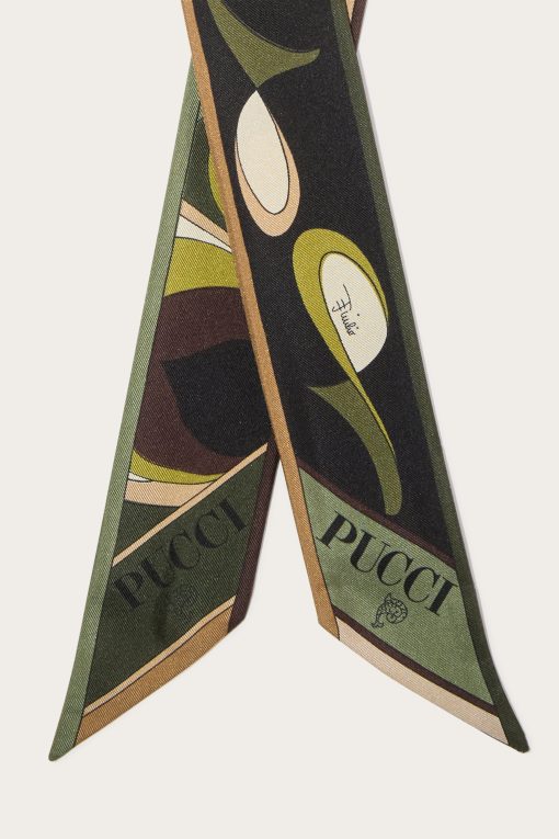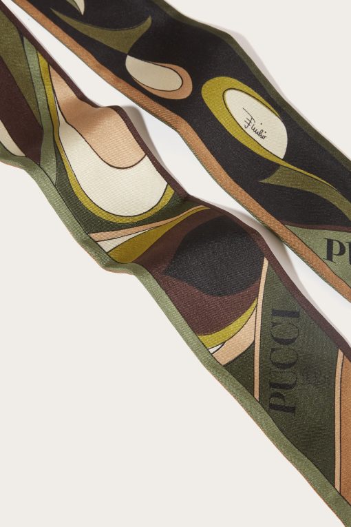 A versatile and refined accessory perfect for adding a distinctive touch to any outfit. Featuring a unique combination of Ondes and Pesci prints, this silk twill headband celebrates the art and energy of Pucci design.Ideal to wear as a headband, around the neck or knotted to a bag for a touch of personalized elegance. The print in shades of khaki adds further versatility, making it easy to pair with both casual and more sophisticated looks.