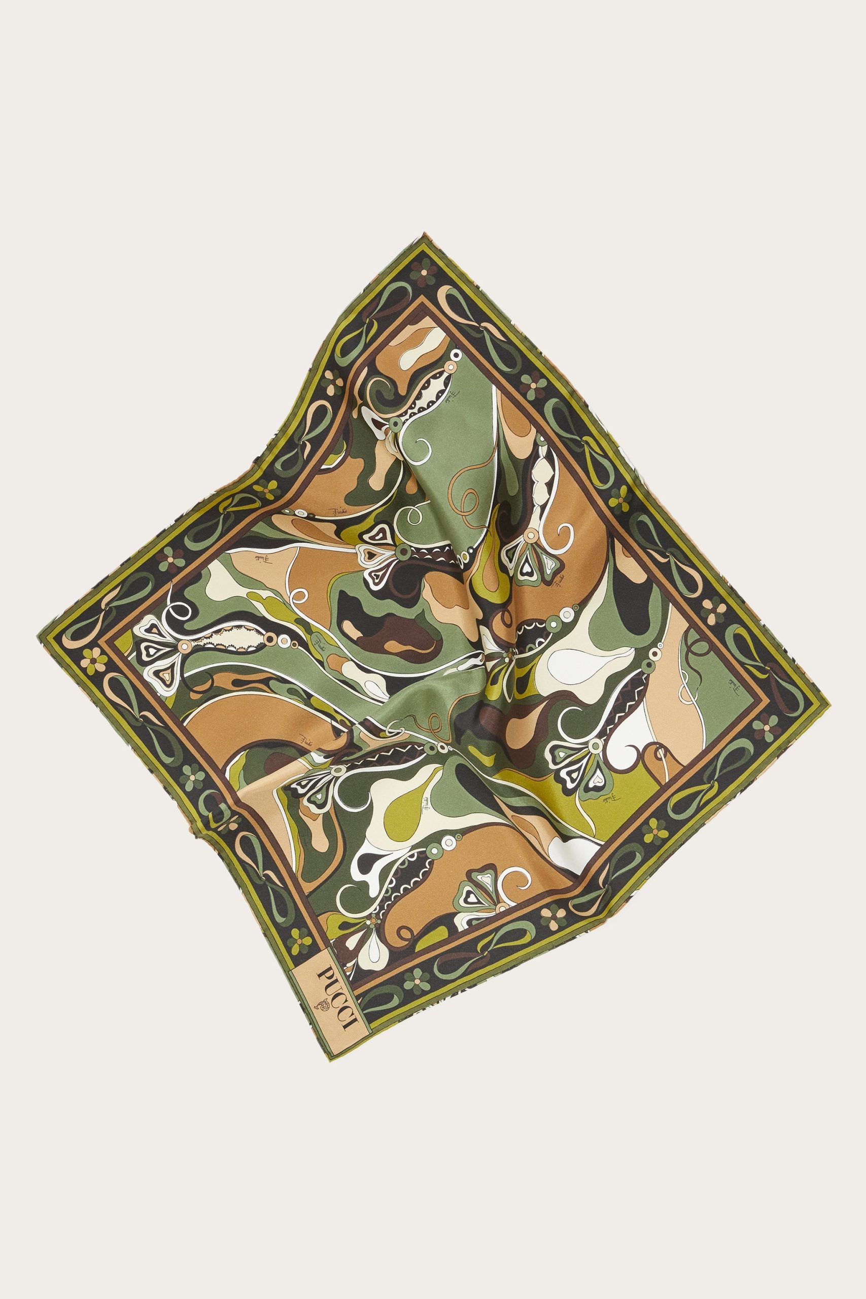 A small accessory that encapsulates the essence of Pucci elegance. This silk twill yoke is perfect for adding a refined and versatile touch to your everyday style. The Orchidee print in an elegant khaki hue evokes lightness and harmony, turning any look into a work of art.Wear it around your neck, tie it as a headband or use it as a decorative detail for your favorite handbag. With its soft texture and unmistakable print, it will be your ally for unleashing style on any occasion.