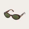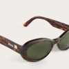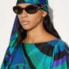 Refined elegance and graphic accents meet in this version of Pucci Fishtail glasses. The oval turtle acetate frame features a rounded, slightly convex line on the front, giving depth and volume to the design. The thin temples, embellished with the iconic Pucci logo followed by the lettering, discreetly balance the look, making it sophisticated and contemporary. Perfect for any occasion, they combine retro charm and modern style.