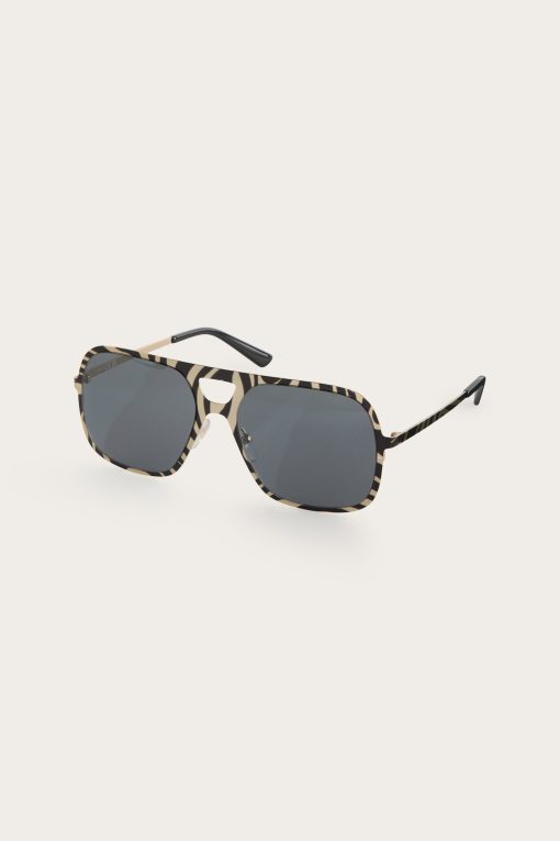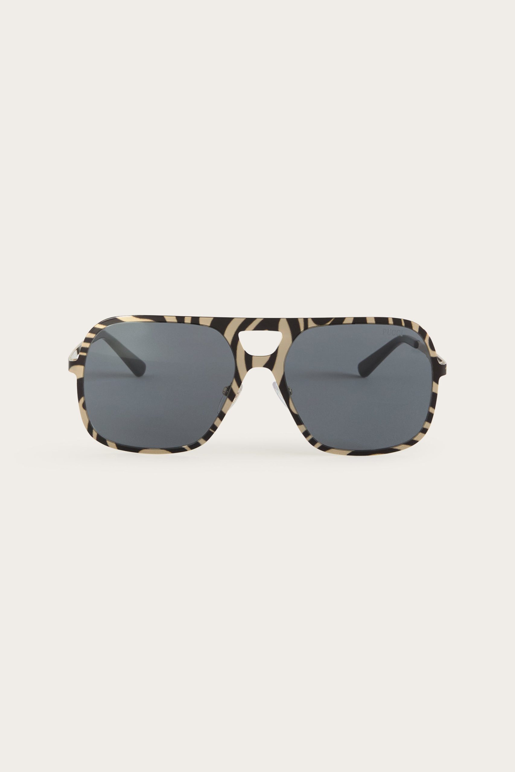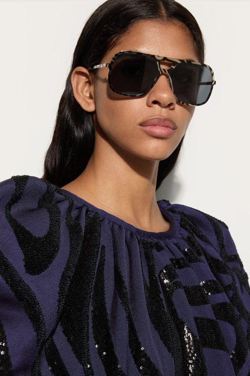 A great classic revisited according to the graphic dictates of Pucci. These aviator model sunglasses combine the energy of Pucci prints with a metal frame with a wrap-around front for a bold, contemporary effect.The brand’s iconic motif lines the entire frame, transforming every detail into a unique expression of style. Smoked lenses complete the design with a sophisticated touch, perfect for those who love to stand out with elegance.