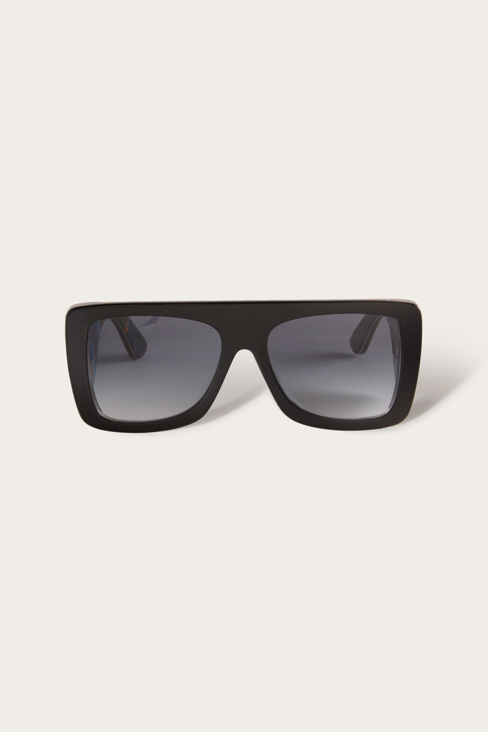 Showcasing Pucci’s confident spirit, these sunglasses feature an enlarged rectangle frame with a straight upper and oversized temples. They’re crafted from glossy black acetate and enlivened with the Iride print at the back.