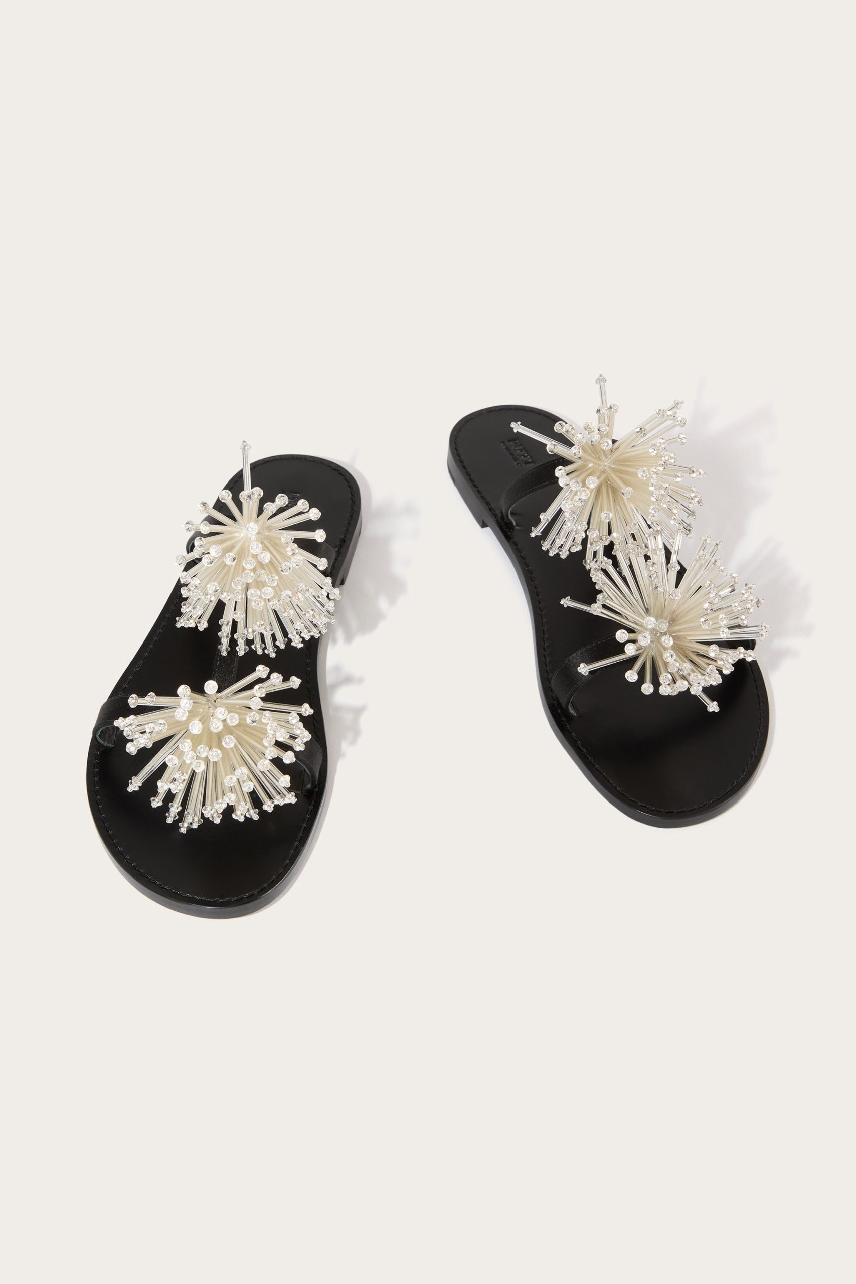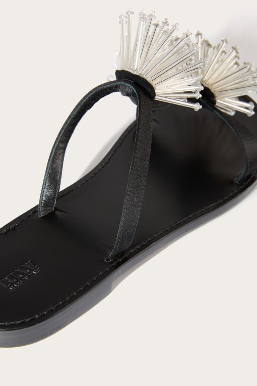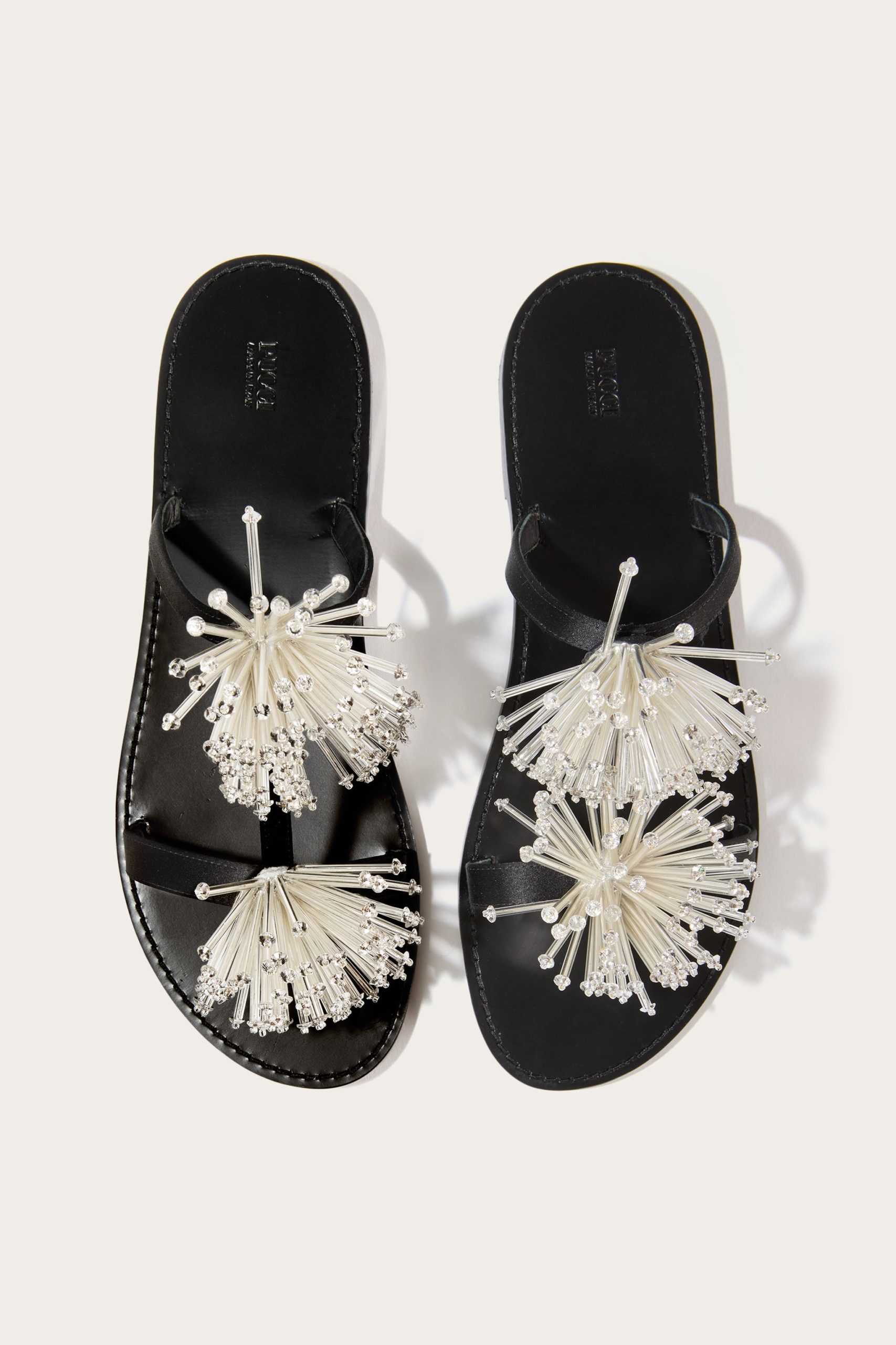 The perfect sandals to add a touch of glamour to your summer days combine comfort and sophistication, making them the ideal accessory for sunset walks, aperitifs by the sea or summer evenings with a sophisticated flavor. The mirrored leather upper reflects the light with elegance, while the embroidery in the same color give a playful and distinctive touch. Pair them with a lightweight long dress or a shorts-and-top ensemble for an attention-grabbing look.