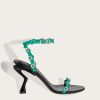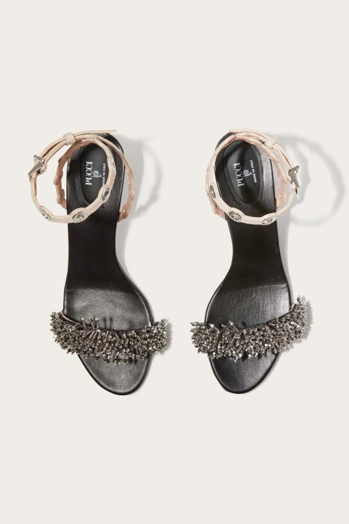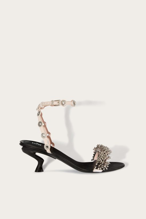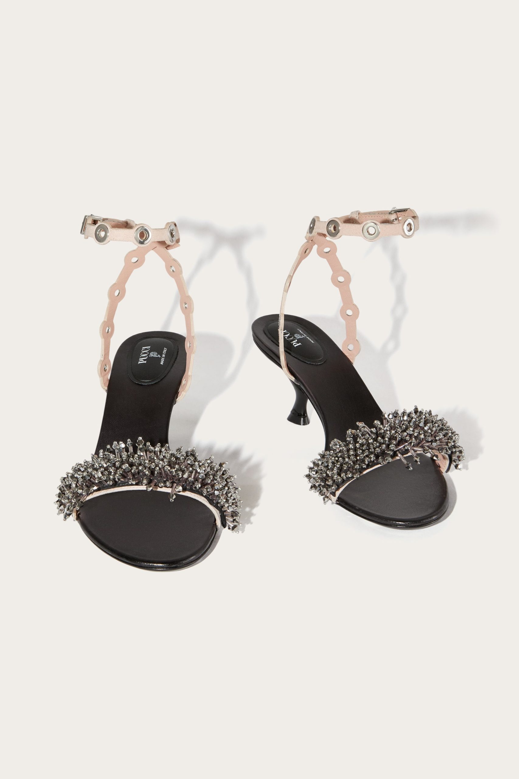 A sandal that speaks of elegance and character: with its sophisticated design and sleek heel, it can become the ideal companion for special evenings, exclusive events or simply to add a touch of glamour to your everyday looks. The suede upper is embellished with micro metallic studs that catch the light with every step, creating a unique visual effect.The adjustable buckle closure on the strap ensures a perfect and comfortable fit.