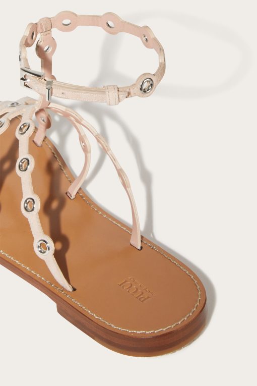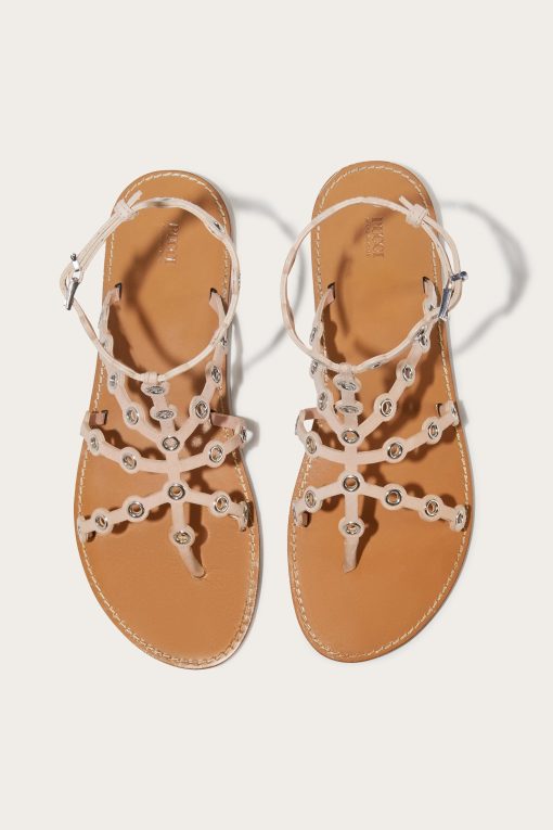 Worn for strolling along the coast or adding a touch of “laid-back” elegance to summer outfits, these flat sandals combine sophisticated design with everyday comfort. The suede upper and buckles decorated with small metal studs evoke a bold, rock appeal, ideal for accenting cool summer looks.The adjustable buckle closure ensures a perfect fit, while the leather sole adds a handcrafted touch that enhances the quality of the design.