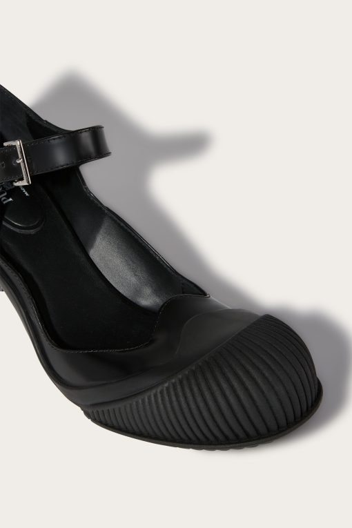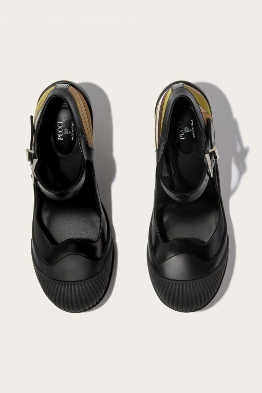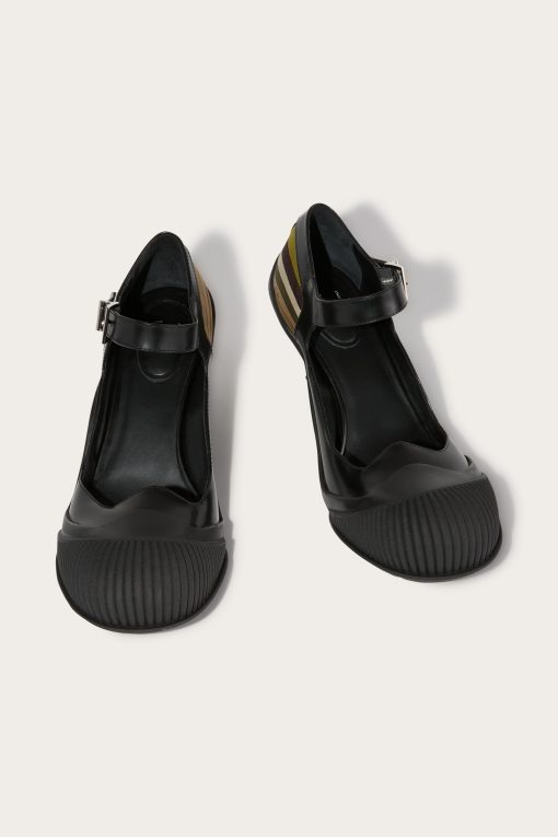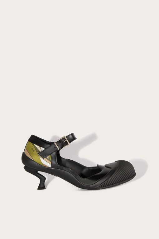 Mary Jane model shoes with a sculptural heel are the perfect choice for a meeting in the city, a special event, or to add a sophisticated touch to your daily outfit.The combination of abrasive leather and silk on the heel adds a refined texture contrast, while the adjustable buckle strap ensures a customized fit, easily adapting to formal or casual chic looks, and becoming a charming new staple in your wardrobe.