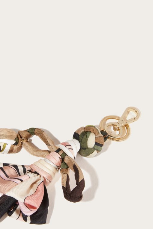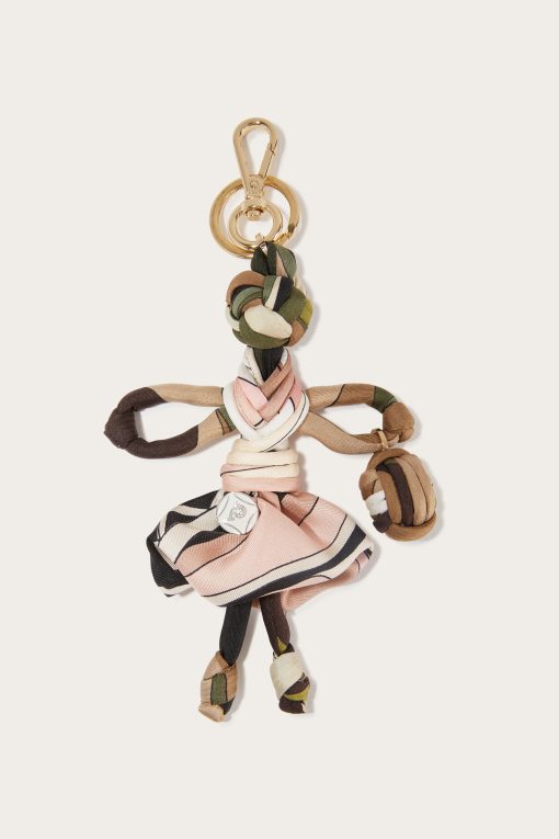 A small detail that encapsulates all of Pucci’s vibrant spirit. This doll keychain is made of woven silk, decorated with the iconic Iride print in refined shades of khaki and nude.Perfect for adding a distinctive touch to keys or as a decorative charm for handbags, it is an accessory that combines craftsmanship and playful design. A true collector’s piece designed for those who love unique and sophisticated details.
