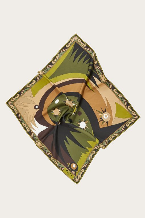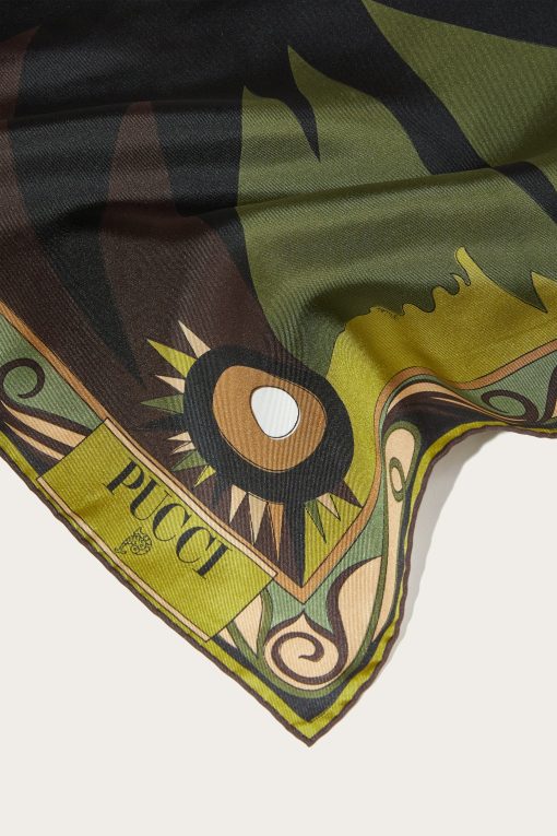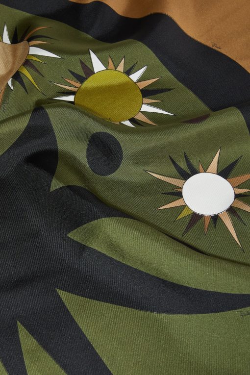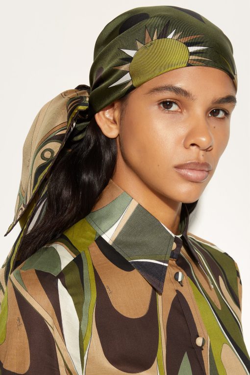 A timeless accessory that embodies Pucci’s signature elegance and vivacity. This silk twill scarf is a celebration of color and movement, enriched by the iconic Stella print in refined shades of khaki.Versatile and sophisticated, it is perfect to wear around the neck, as a headband or to decorate a handbag. Its fluid and light texture makes this scarf the ideal element to add a touch of class and personality to any outfit.
