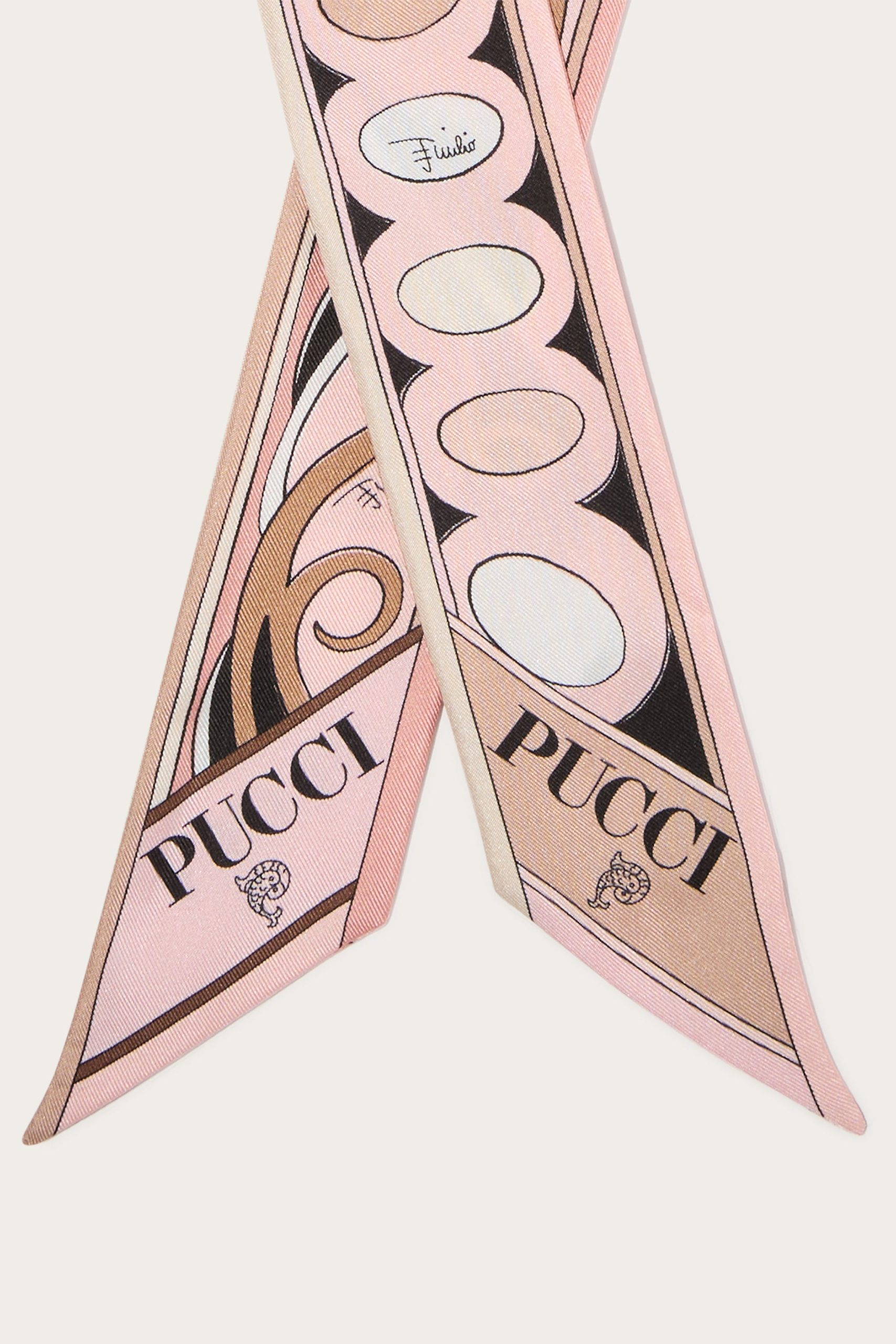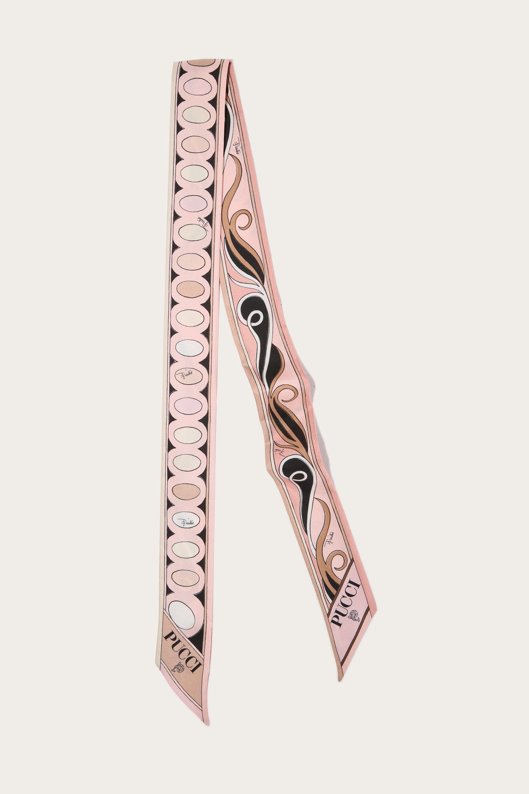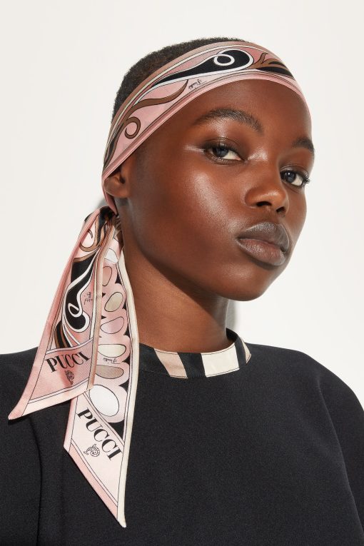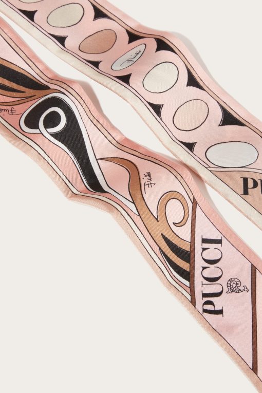 A versatile and refined accessory perfect for adding a distinctive touch to any outfit. Featuring a unique combination of iconic prints, this silk twill celebrates the art and energy of Pucci design.Ideal to wear as a headband, around the neck or knotted to a handbag for a touch of personalized elegance.