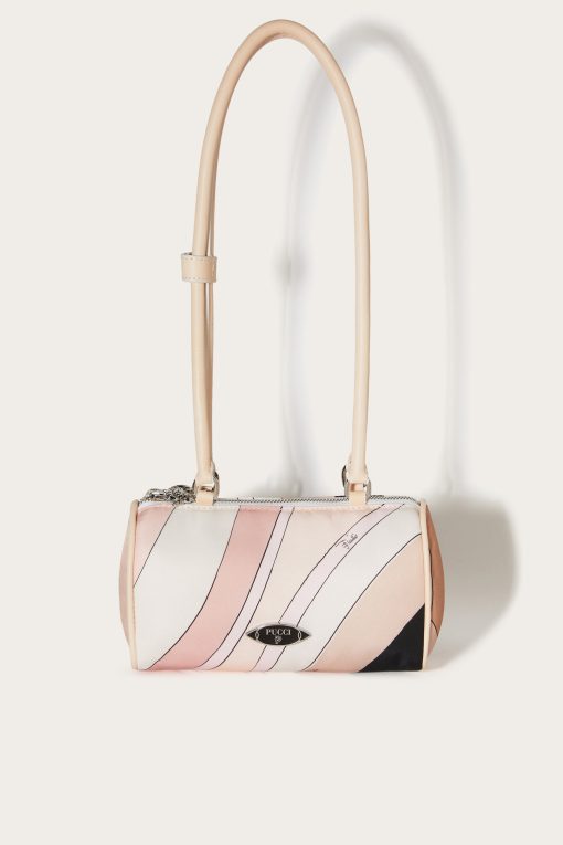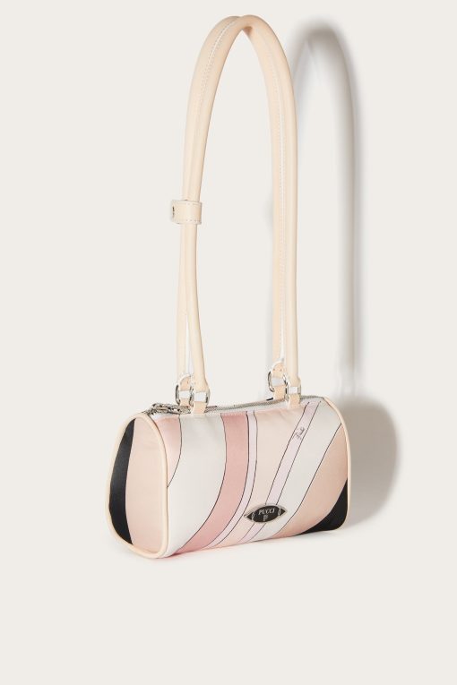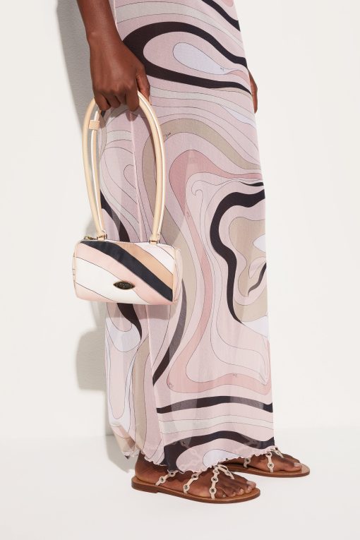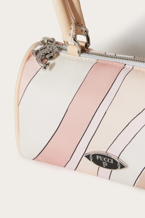 Compact, versatile and full of unique details: the mini bag is the perfect balance of practicality and style. Made of printed nylon with the iconic Iride print in nude, this bag stands out for its lightweight yet structured design, ideal for accompanying you anytime, anywhere.Streamlined handles ensure a comfortable grip, while the interior conceals a handy zippered pocket to better store your most important items. Nappa or Vacchetta leather finishes, combined with contrasting edges, add a touch of handcrafted sophistication. The enameled Pucci plaque and Pesci-shaped zipper pull complete this accessory with distinctive and iconic brand details.