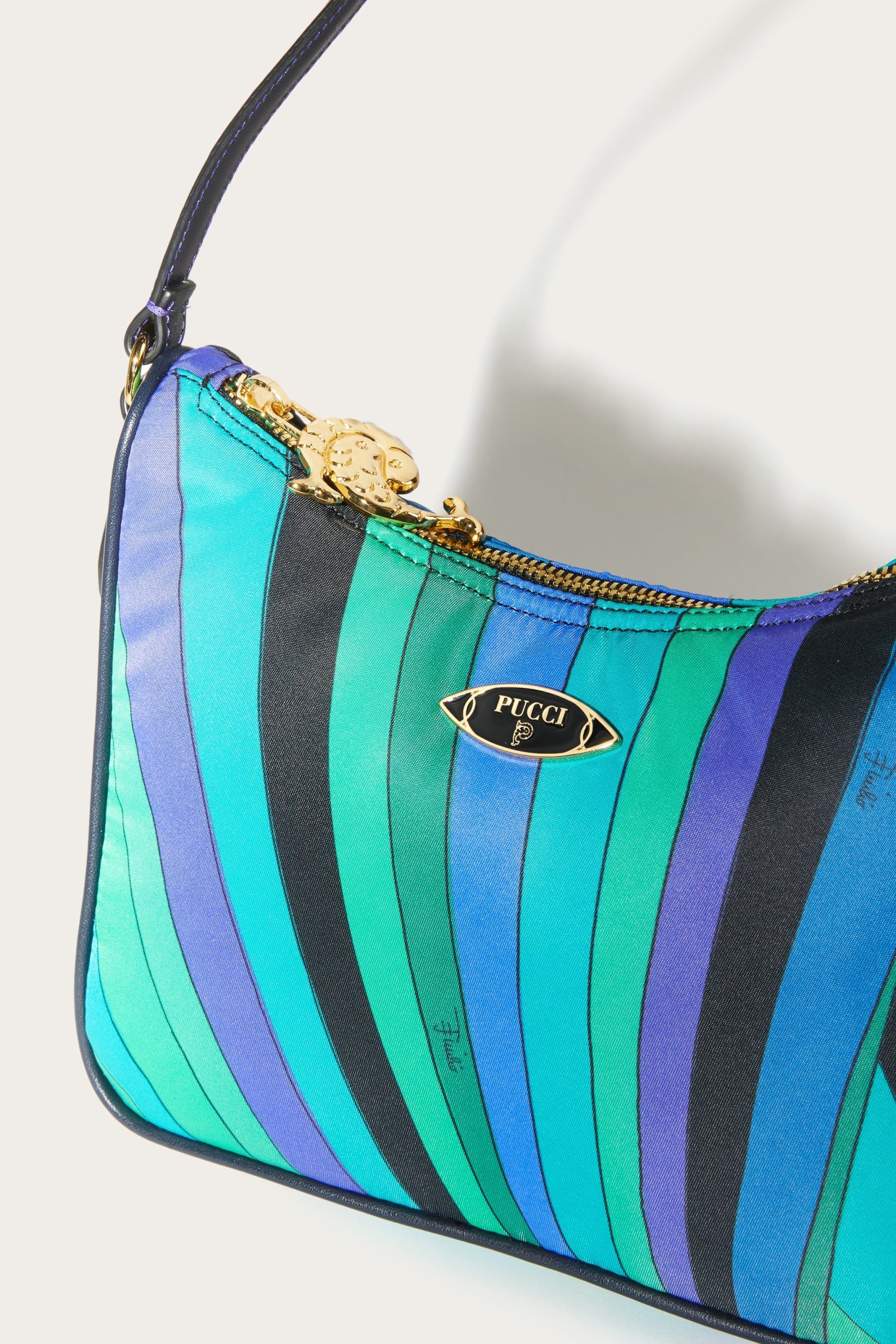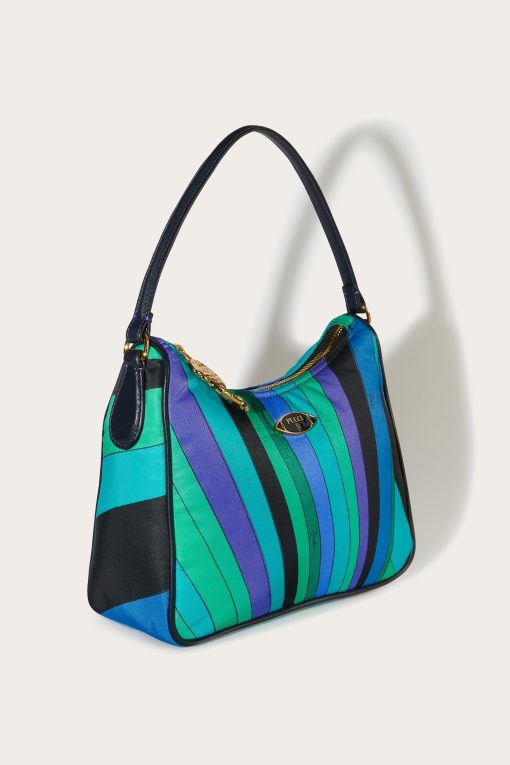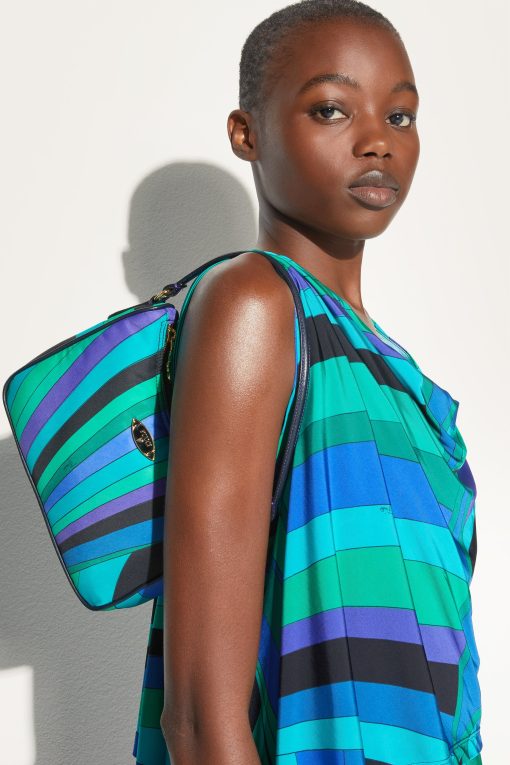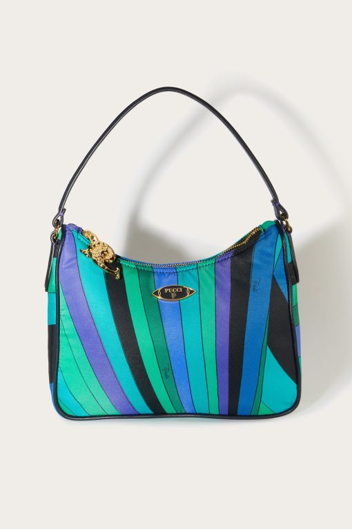 A perfect blend of practicality and contemporary style, the padded nylon shoulder bag is the ideal accessory for those who love functional design that doesn’t sacrifice unique details. Printed nylon gives it a modern, durable aesthetic, while nappa or cowhide leather trim adds a touch of handcrafted luxury.Featuring a detachable adjustable shoulder strap, a convenient handle and an interior flat pocket, this bag is designed to accompany you in style from daily routine to leisure. The Pesci-shaped zipper pull and enameled Pucci plaque are the hallmarks that make this a unique accessory, perfect for those who like to stand out with personality.