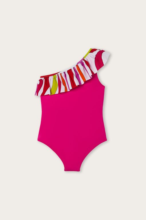 Pucci Junior Contrast Ruffle Swimsuit | Fuchsia