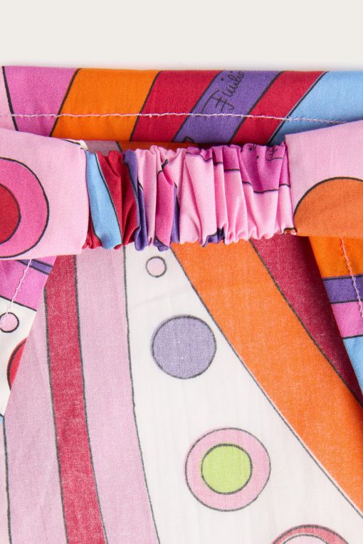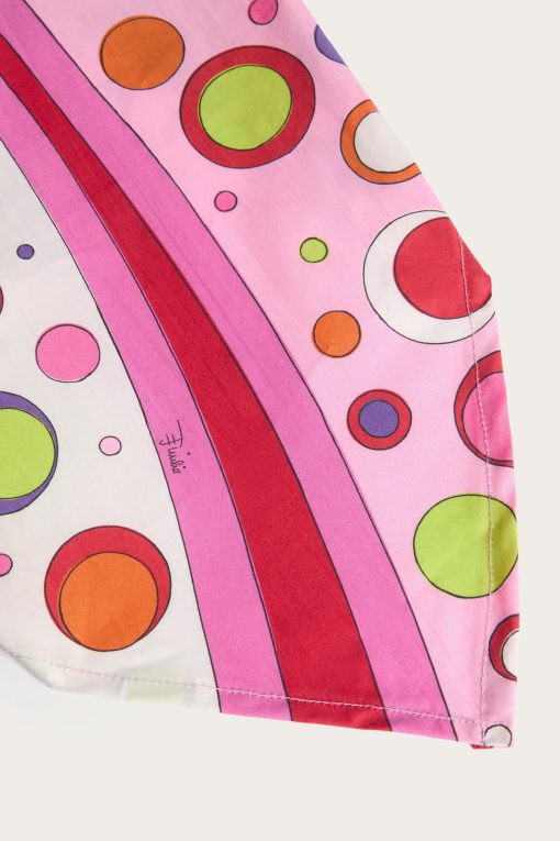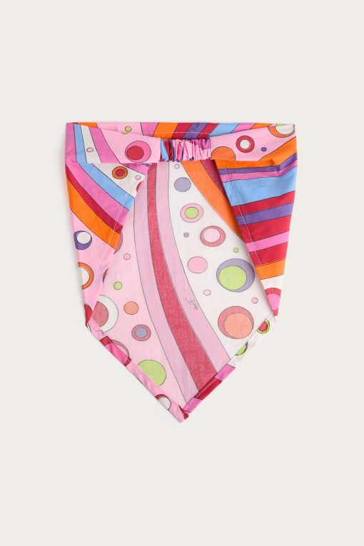 A practical and adorable accessory for days in the sun: this 100% cotton bandana is lightweight, breathable and perfect for protecting little ones’ heads in style.The Fontane print in orange and multicolor gives a charge of joy and color, signing even the simplest outfits with the unmistakable Pucci touch.