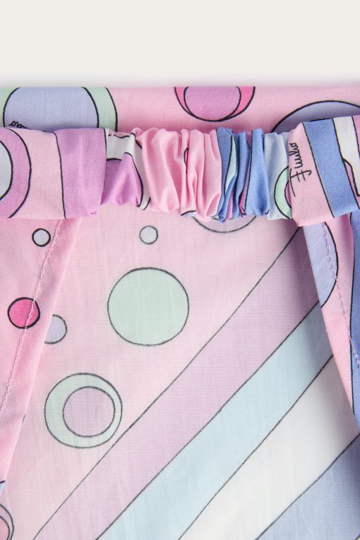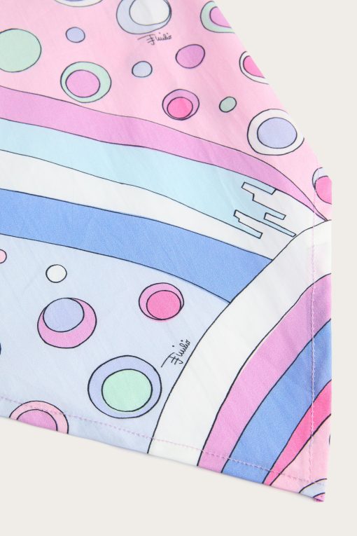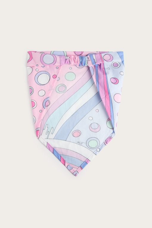 A practical and adorable accessory for days in the sun: this 100% cotton bandana is lightweight, breathable and perfect for protecting little ones’ heads in style.The Fontane print in pink and multicolor gives a charge of joy and color, signing even the simplest outfits with the unmistakable Pucci touch.