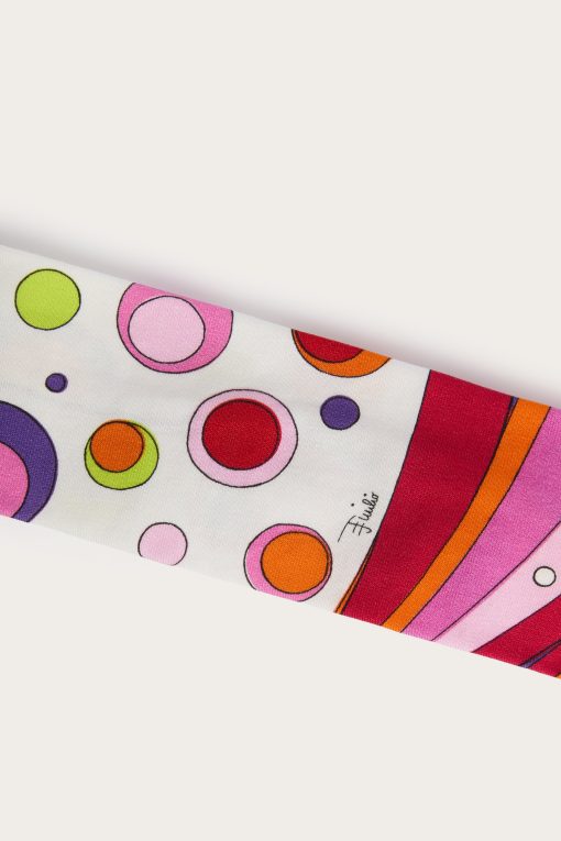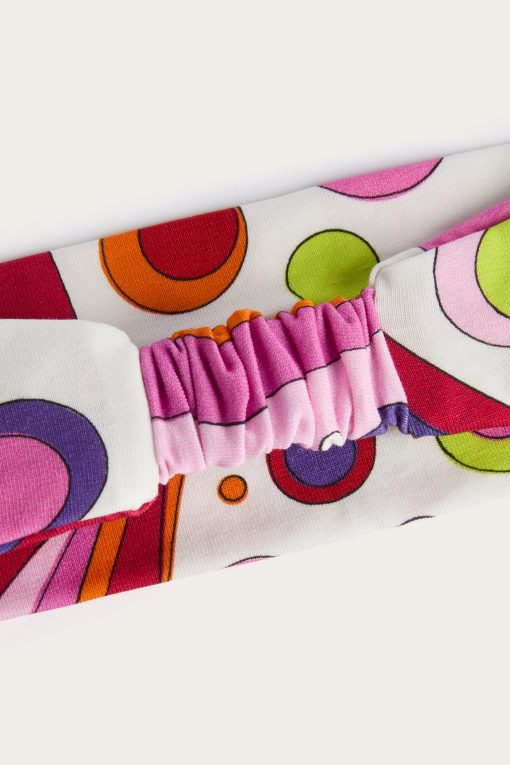 A super sweet accessory to add a touch of cheer to first looks. This stretch jersey headband is soft, stretchy and comfortable on the most delicate skins.Entirely decorated with the Fontane print in orange and multicolor tones, it is designed to bring all the color and fantasy of the Pucci universe right from the start.