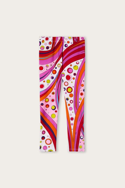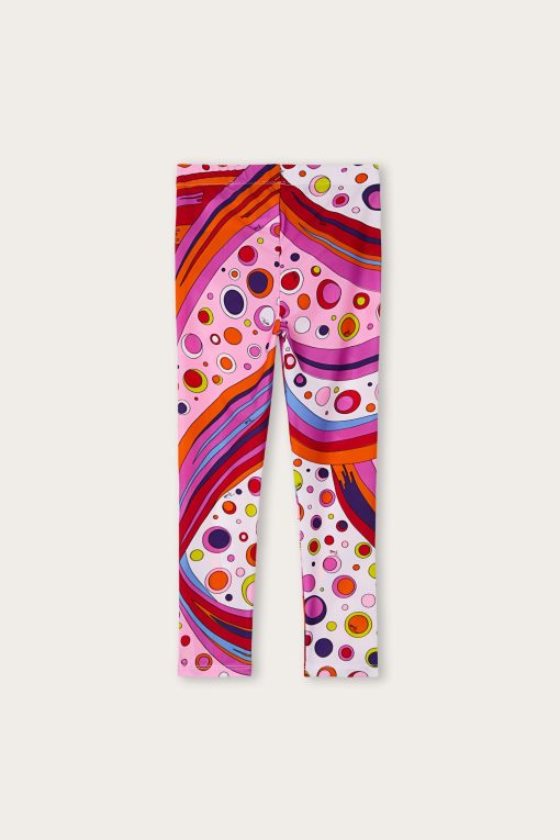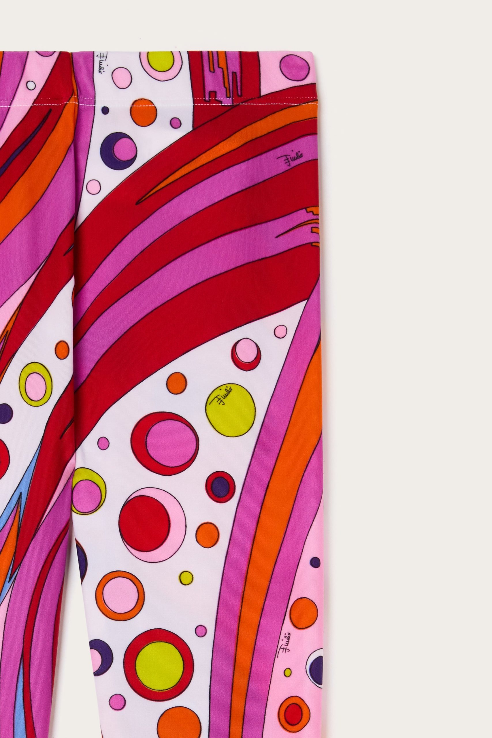 Perfect for running, jumping and moving in freedom. These long lycra leggings hug the silhouette with a comfortable, stretchy fit designed for active, energy-filled days.The Fontane print in shades of orange and multicolor gives the garment a lively and playful touch, bringing all the Pucci graphic dynamism to the Junior world.