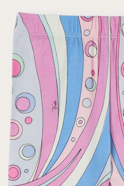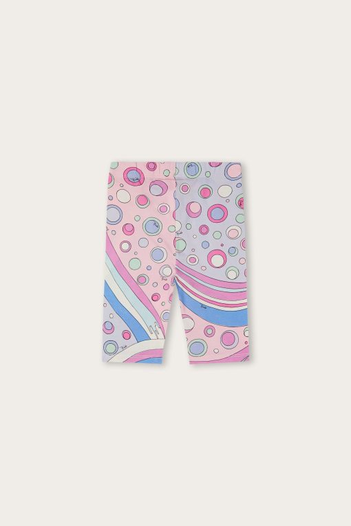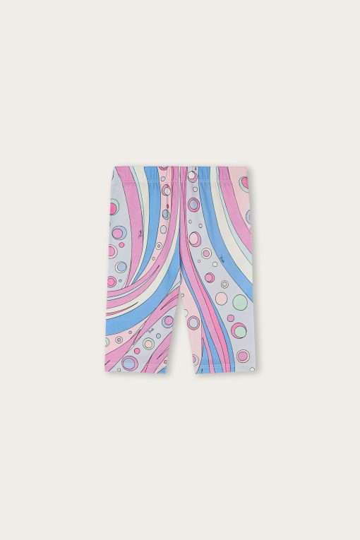 Comfortable, colorful and perfect for moving freely, these stretch jersey short leggings conform to the body with softness and flexibility, ideal for accompanying every moment of the day, from playing to relaxing.The Fontane print in pink and multicolor adds energy and style to the garment, for a dynamic and cheerful look that brings all the liveliness of Pucci to the junior wardrobe.