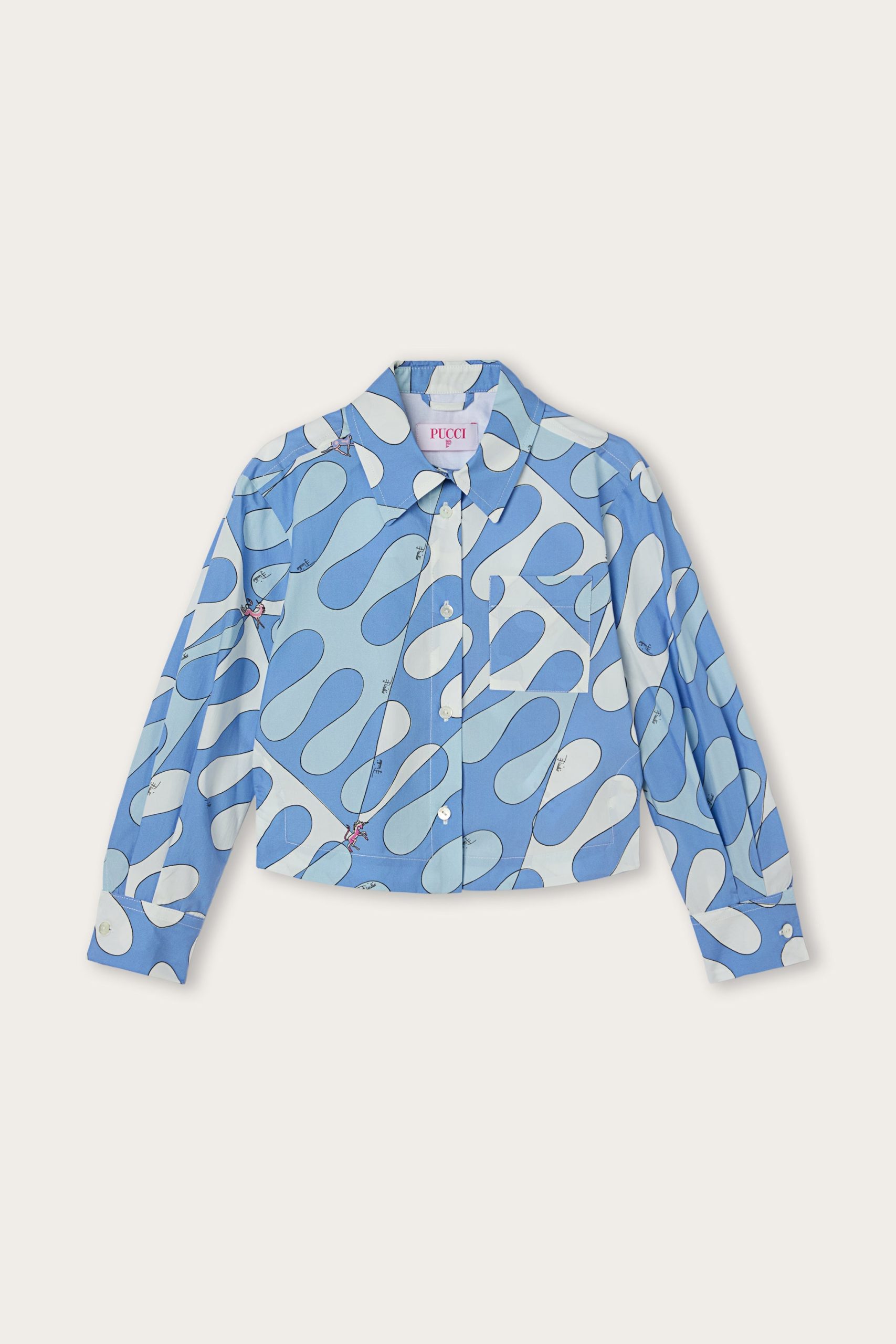 Colorful, flowing and full of personality. The Leocorno print in ivory and light blue tones makes this shirt lively and instantly recognizable, with all the cheerfulness of Pucci style.Perfect for giving a creative touch to even the simplest outfits.