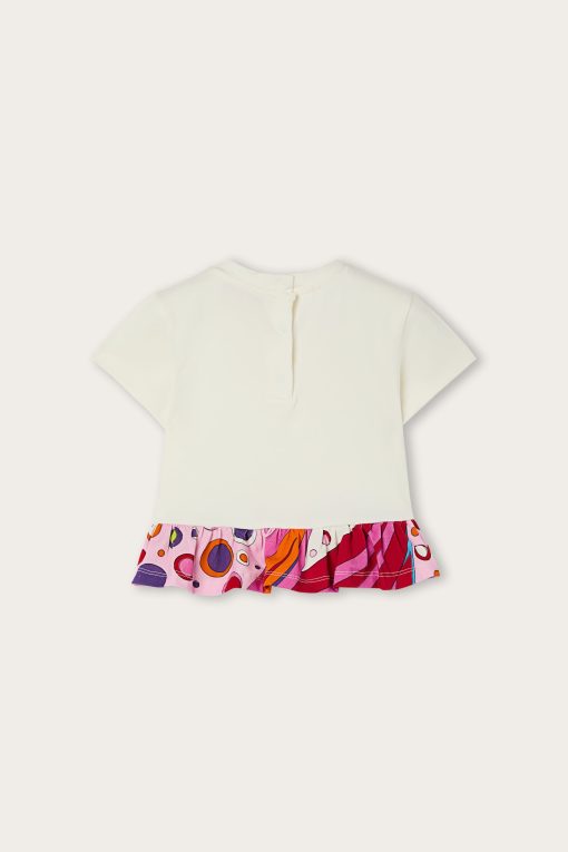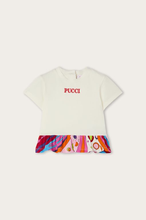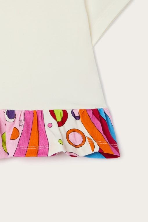 Pucci Junior T-shirt With Logo And Ruffles | White & Multicolor