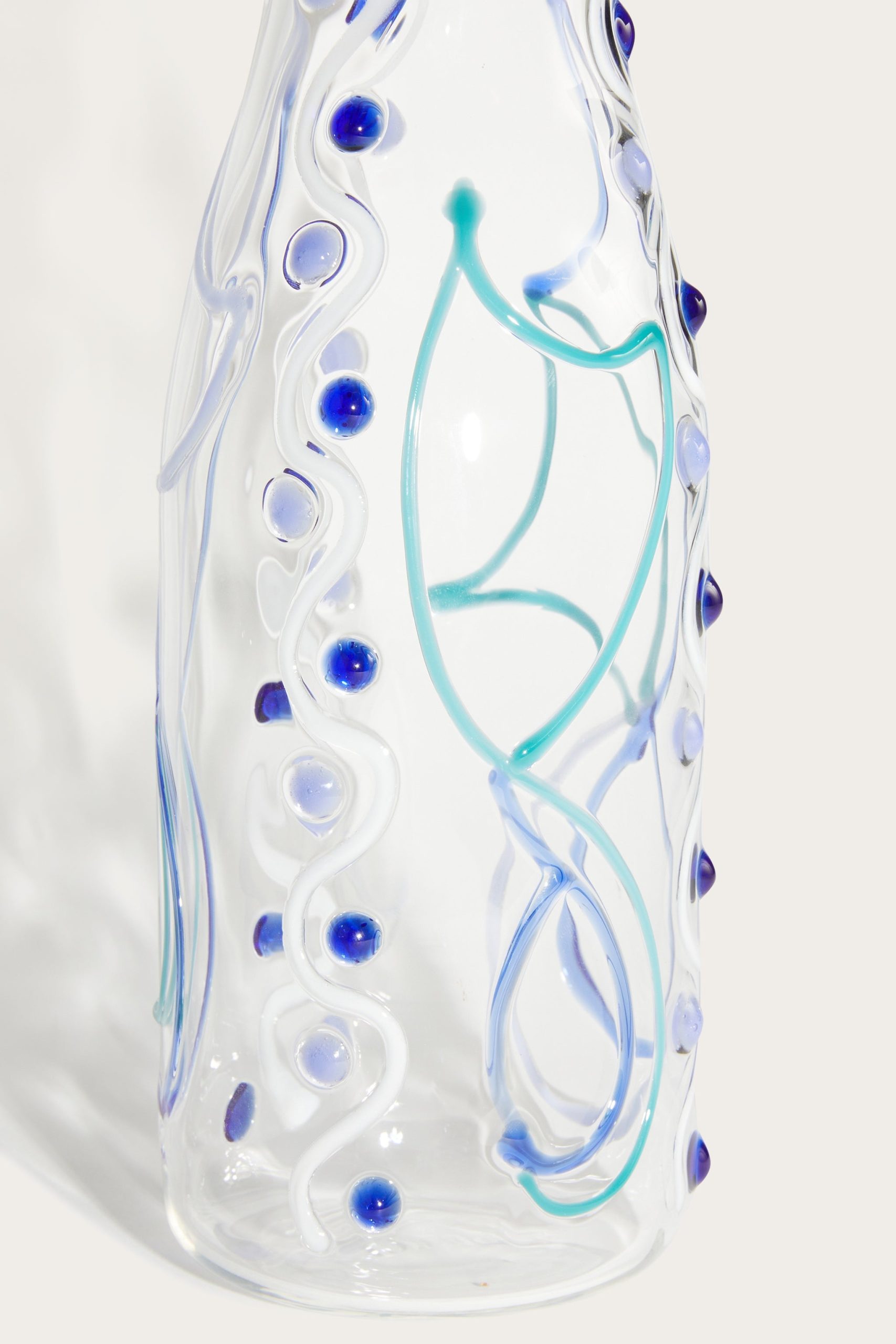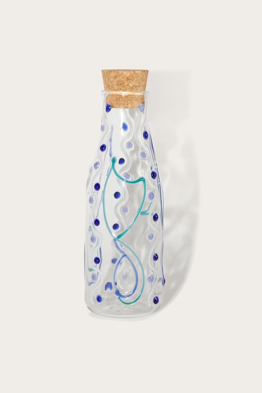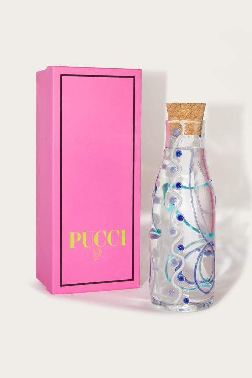An ode to refined craftsmanship and timeless design. This hand-blown glass carafe is embellished with colored glass appliqués that echo the vibrant Pesci motif. Ideal for serving water, juice or cocktails during a social brunch or an outdoor summer dinner, in perfect Pucci style.