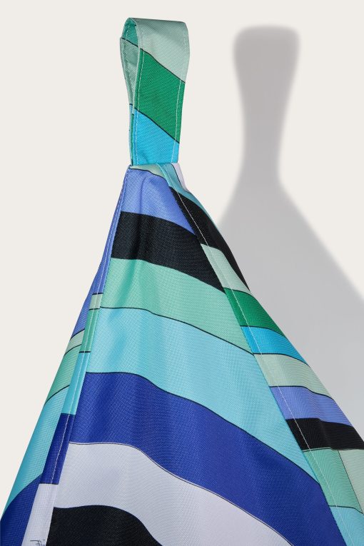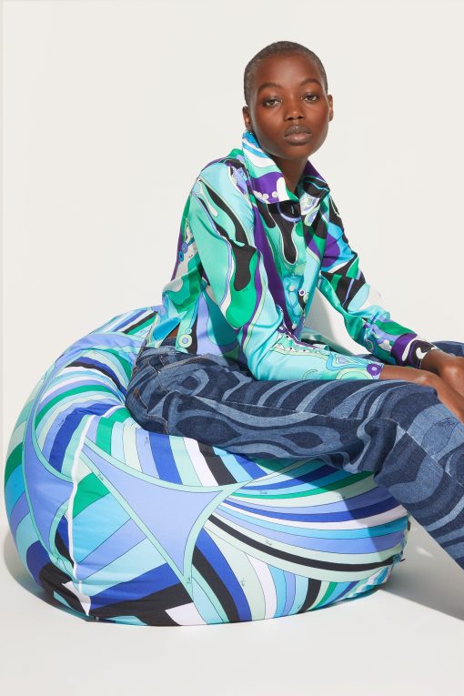 A lively and stylish accent for any room. This pouf, with its unique Iride print in shades of green and lilac, is not just a piece of furniture, but a piece of art that transforms spaces. Used as a footstool, additional seat or simply as a decorative element, its presence lends a bold, contemporary touch that looks good anywhere.