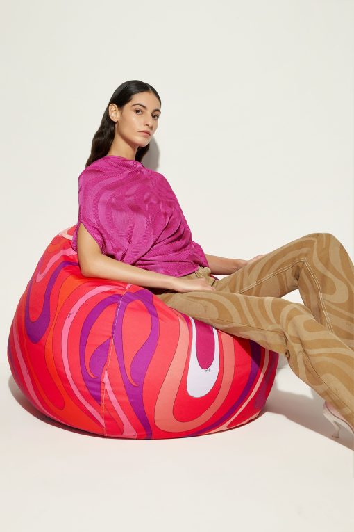 A lively and stylish accent for any room. This pouf, with its unique Marmo print in coral and fuchsia hues, is not just a piece of furniture, but a piece of art that transforms spaces. Used as a footstool, additional seat or simply as a decorative element, its presence lends a bold, contemporary touch that looks good anywhere.
