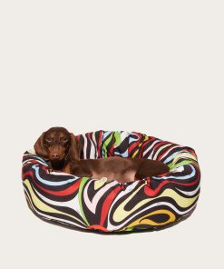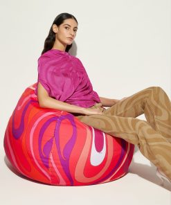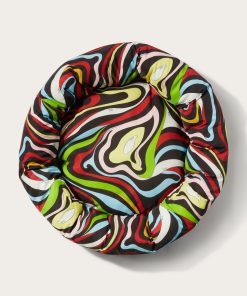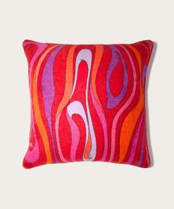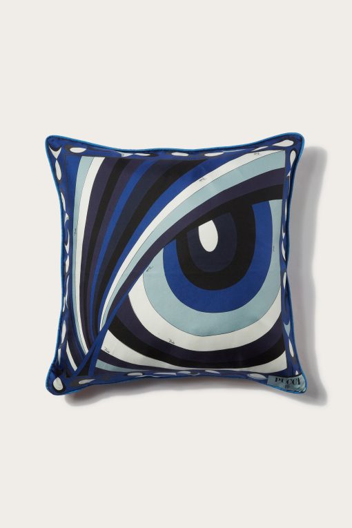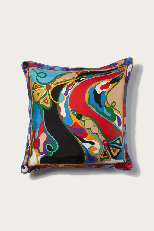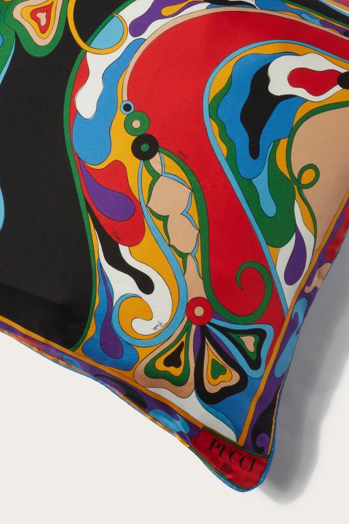 Camille Miceli puts Pucci’s cheerful design direction on full show with silk-twill cushion: it’s covered with the opulent Orchidee and Iride prints in vibrant jewel tones.