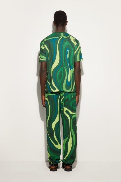 Bold style and everyday comfort. This Green-colored Marmo print short-sleeve T-shirt stands out for its loose, boxy cut and relaxed fit. The iconic graphic adds a dynamic touch, turning an essential garment into a symbol of casual elegance.Perfect for completing vibrant summer looks or pair with coordinating pants for a true style statement.