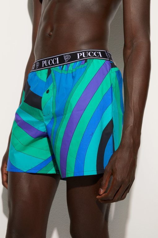 Comfort and lightness meet in these boxers made from cotton. The cool, breathable fabric is enhanced by a soft-touch finish, offering a pleasant all-day fit.The emerald Iride print adds a distinctive touch, enhancing the garment’s dynamic and refined character. The elastic waistband ensures a perfect fit without constriction, for an ideal blend of functionality and style.