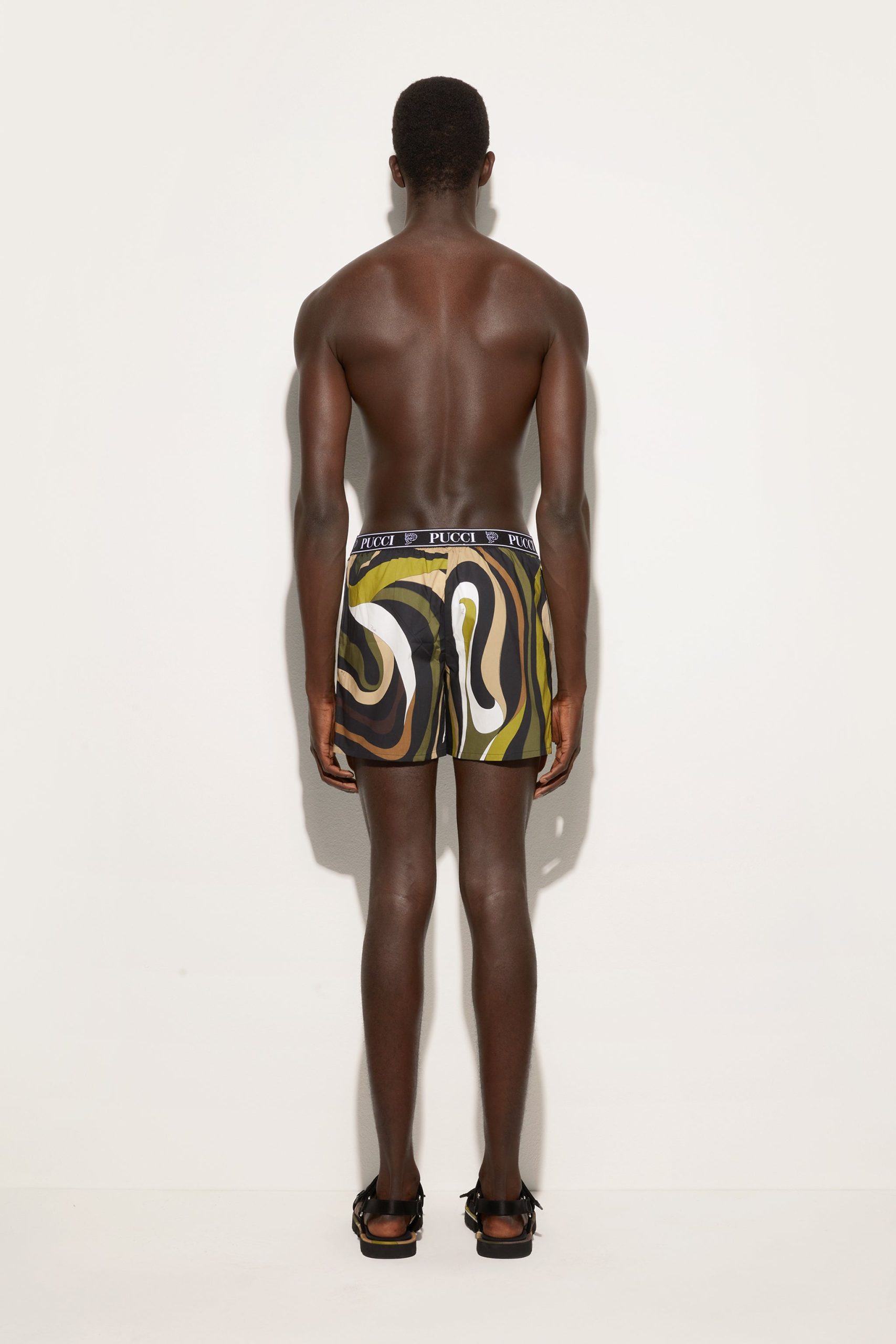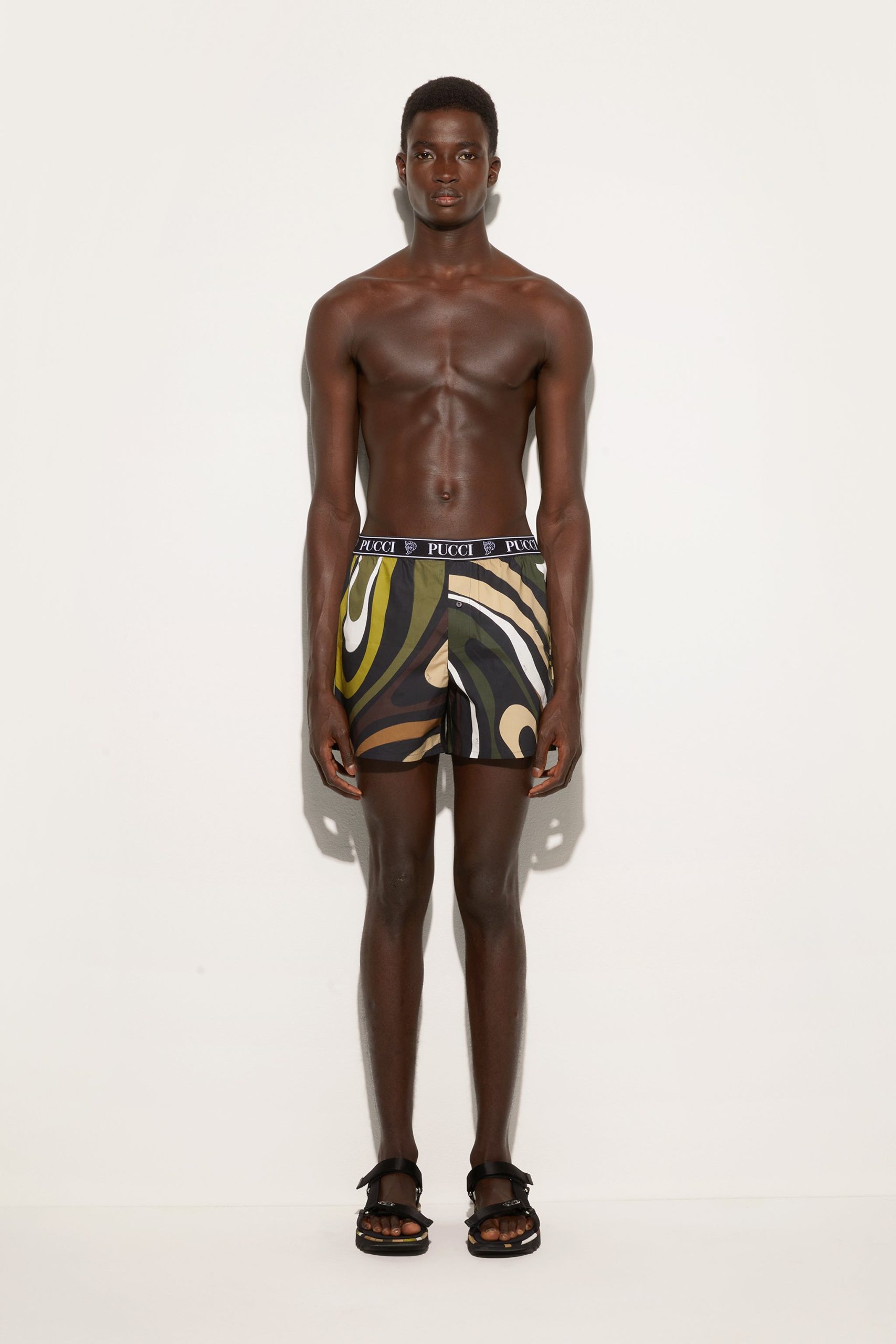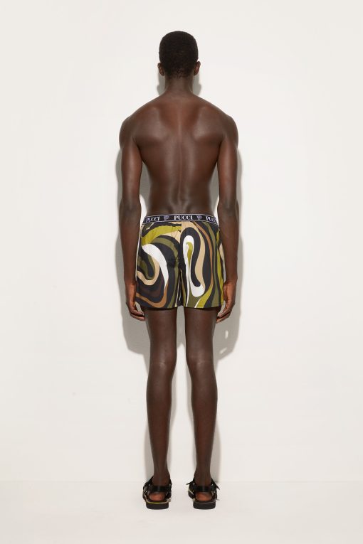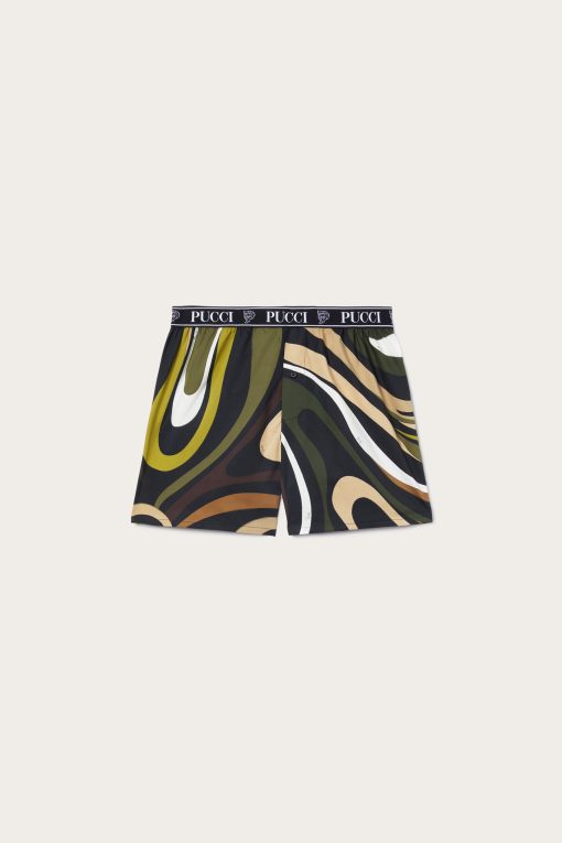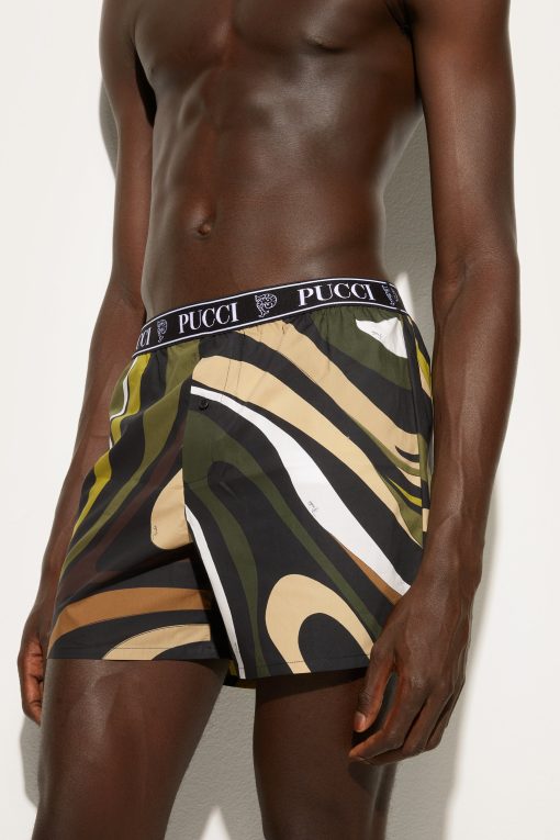 Comfort and lightness meet in these boxers made from cotton. The cool, breathable fabric is enhanced by a soft-touch finish, offering a pleasant all-day fit.The khaki Marmo print adds a distinctive touch, enhancing the garment’s dynamic and refined character. The elastic waistband ensures a perfect fit without constriction, for an ideal blend of functionality and style.