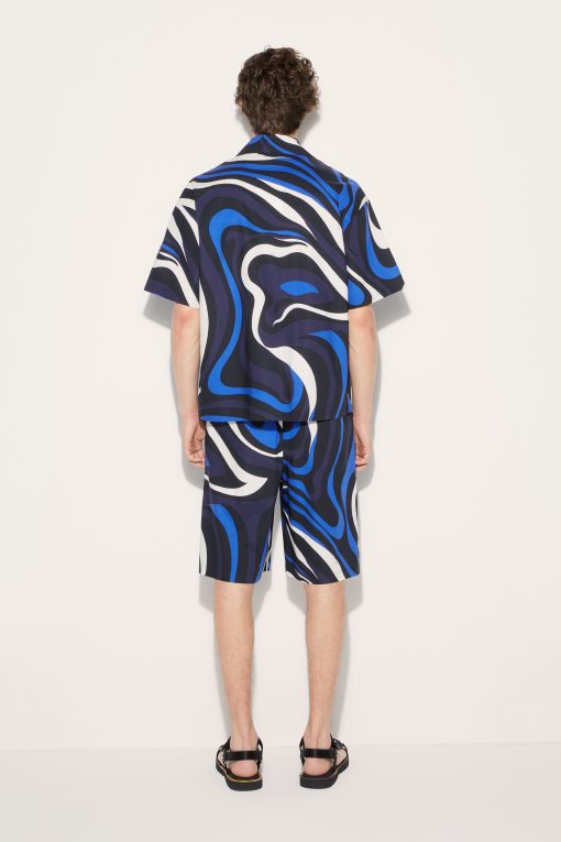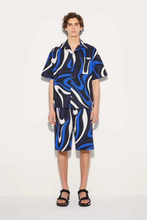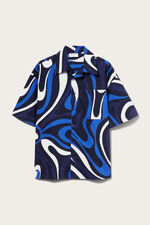 Pucci Men’s Marmo-print Cotton Shirt | Navy Blue