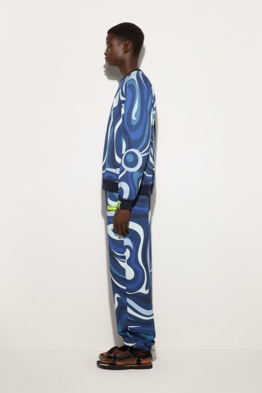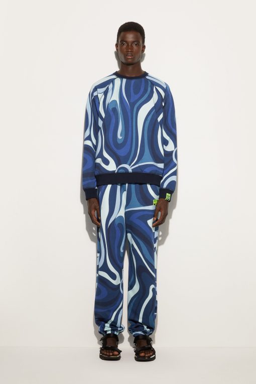 Pucci Men’s Marmo Print Fleece Sweatshirt | Indigo