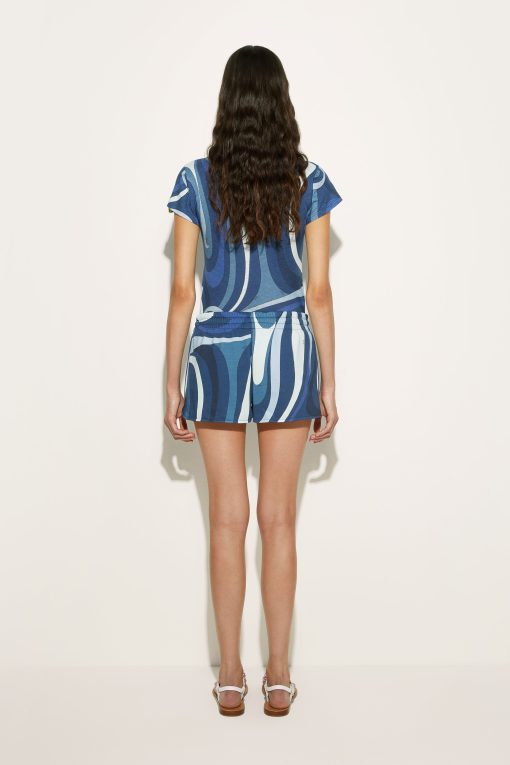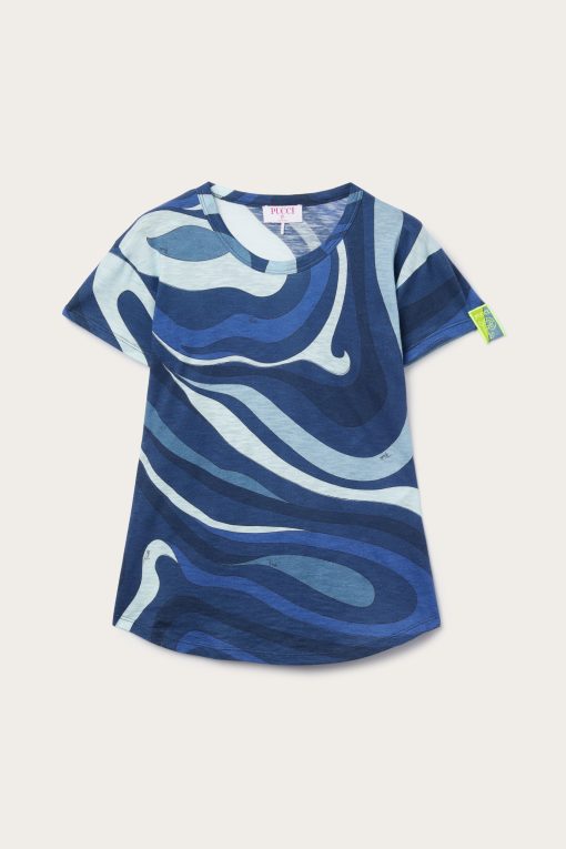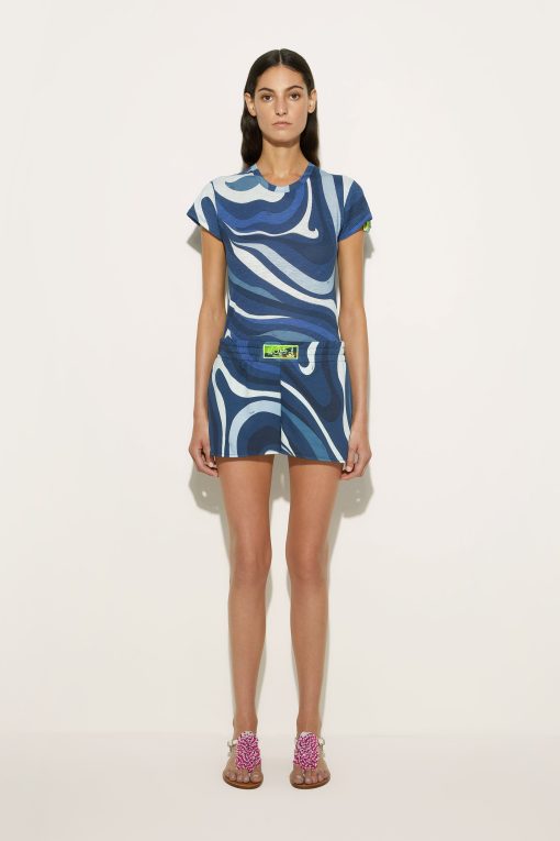 The modern interpretation of an essential garment. This Indigo Marmo print short-sleeved T-shirt combines simplicity and character, thanks to its regular fit and cut that falls gently below the waist. The clean lines and iconic print make it perfect for adding a distinctive touch to your wardrobe.Pair with the coordinating shorts for a sophisticated summer look or wear with denim for a casual, sophisticated outfit.