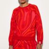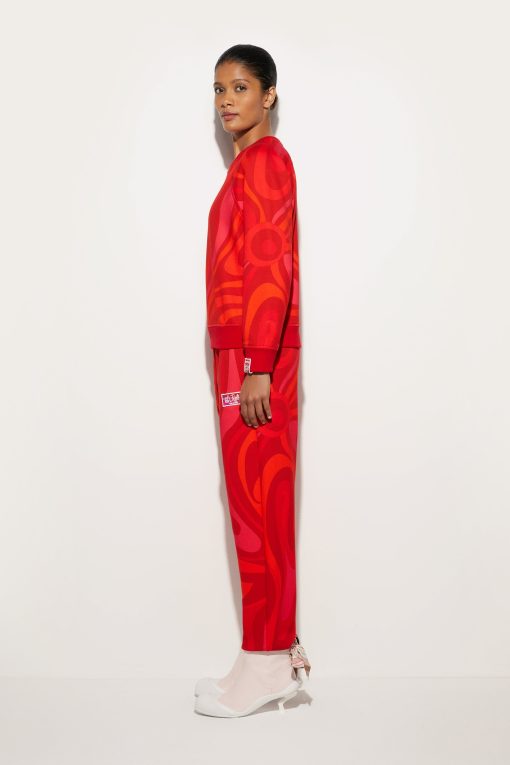 Style and comfort embrace in this warm fleece sweatshirt with Red-colored Marmo print that combines the softness of materials with the dynamism of PUCCI’s iconic graphics. Ribbed trims on the waist, cuffs and neckline create a fitted silhouette, perfect for a casual yet refined look, in the city as well as in moments of relaxation. It is easily paired with tailored-cut pants, denim or its matching pants, for a style that ranges between elegance and versatility capturing the metropolitan spirit with a hint of contemporary sophistication.