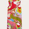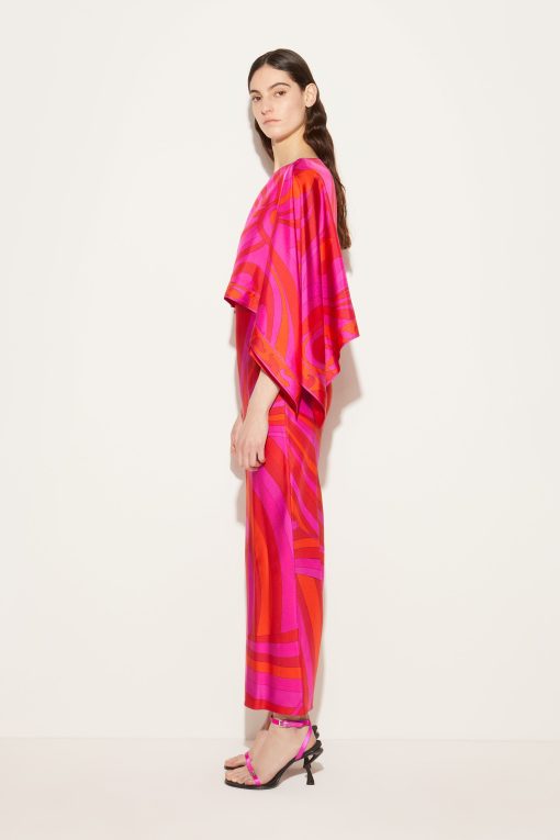 Billowing silhouettes and bold patterns are part of Pucci’s DNA, and this dress encapsulates both. Cut from Iride-print silk twill, it features two brand signatures: a layered cape-effect top reminiscent of the brand’s scarves, complete with a boat neckline.