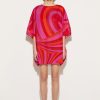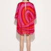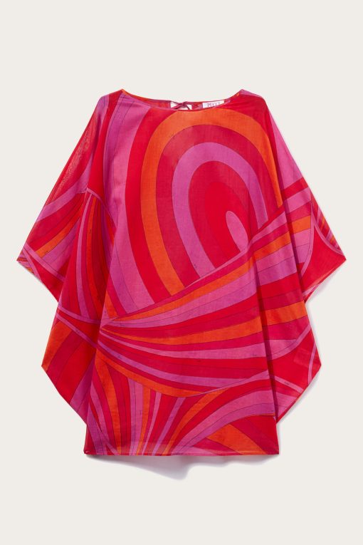 This flowing kaftan is cut from lightweight cotton muslin and decorated with the hypnotic curves of the Iride print. It’s cut to a mini length with billowing draped sleeves.