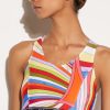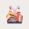 This athletic crop top is enlivened by the dynamic stripes of the heritage Iride print. It’s cut to a scoop-neck, racerback silhouette and fitted with a logo-jacquard underband.