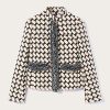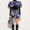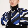 This jacket encapsulates Pucci’s high-octane impact, thanks to its cropped puff-sleeve silhouette and hypnotic Iride print. It’s cut from silk and is finished with a crystal-encrusted metal plaque at the neck.