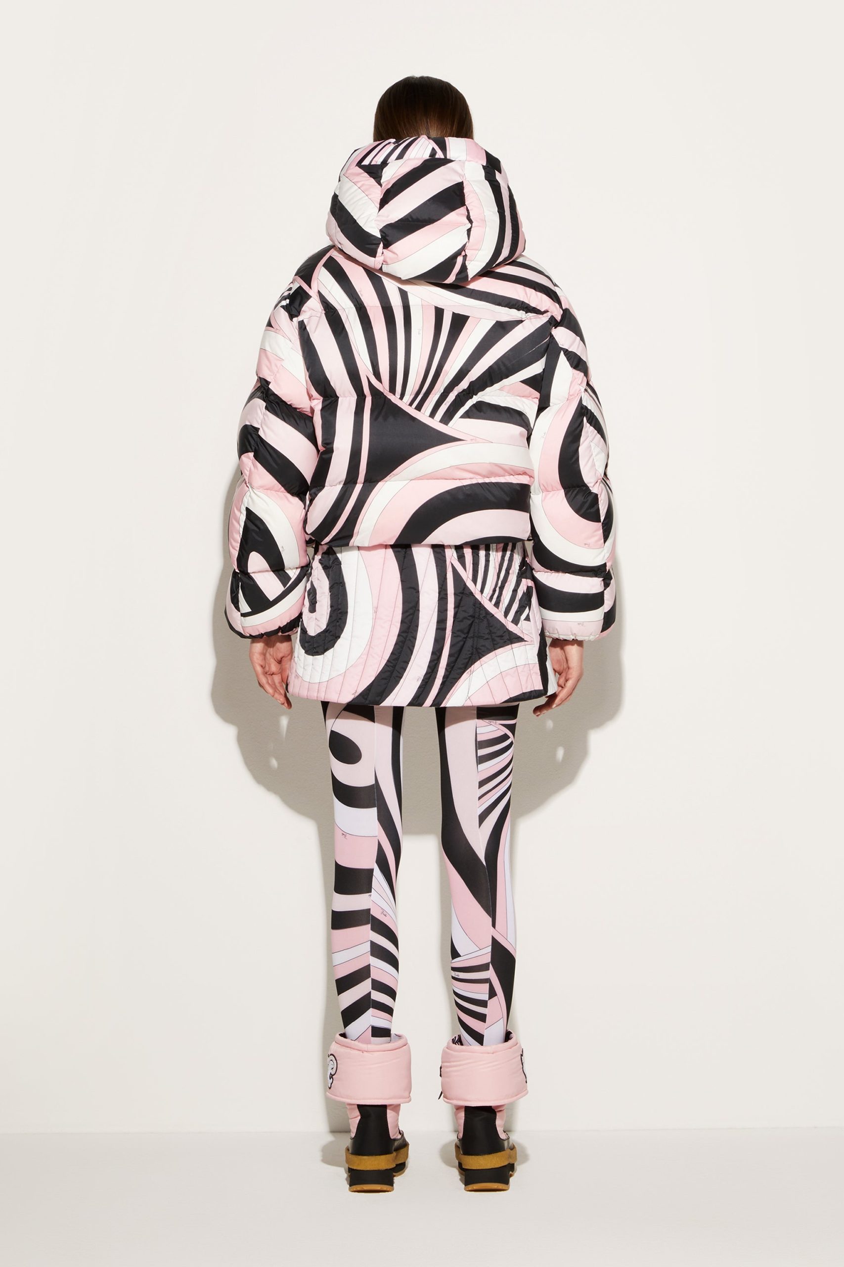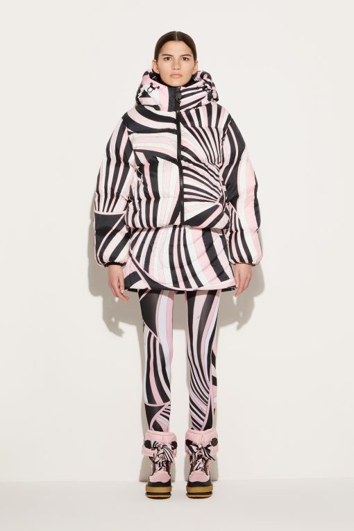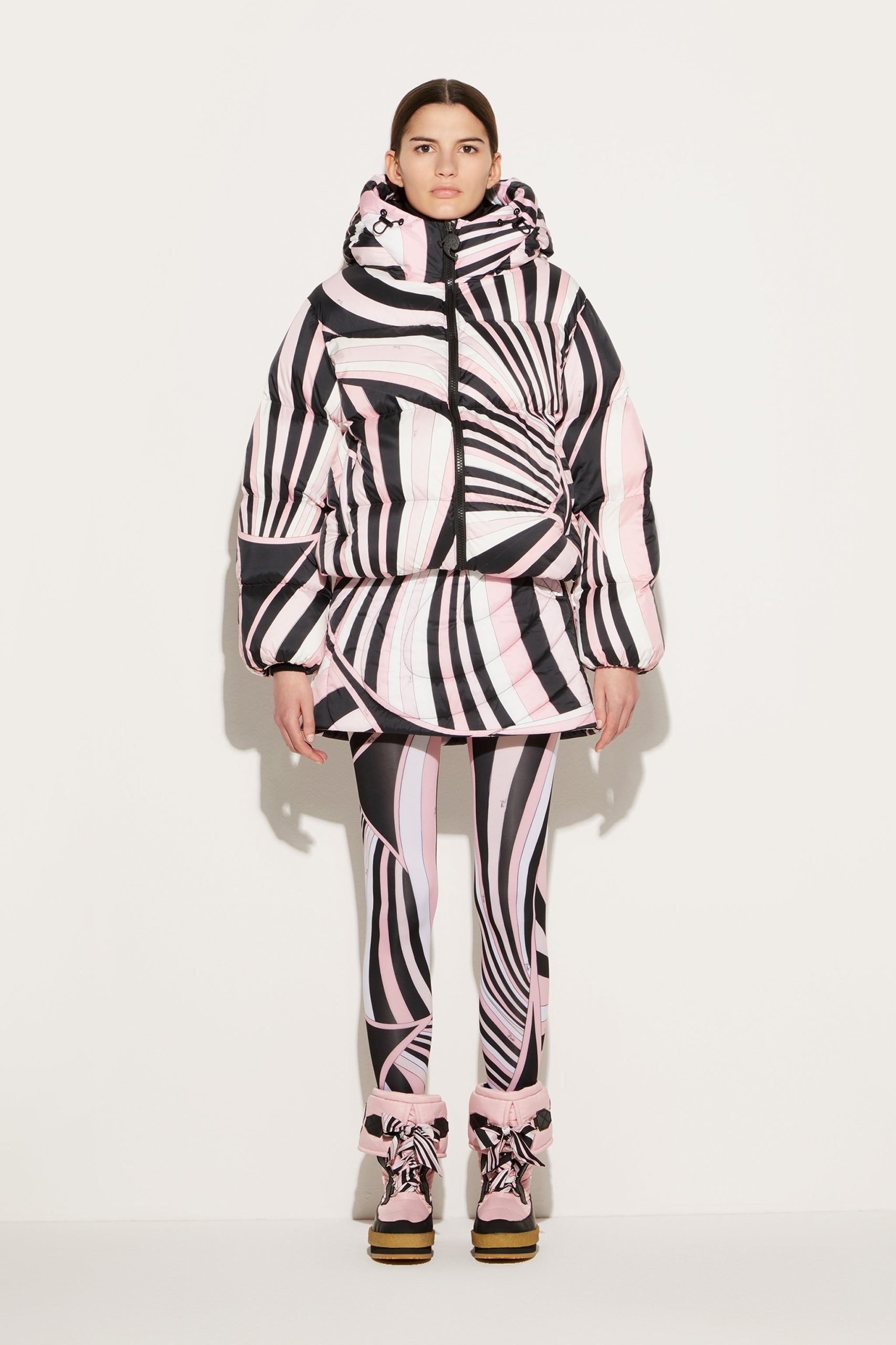 Emboldened by Pucci’s signature pattern play, this jacket is covered with the Iride print in bright rainbow stripes. It’s made from a technical fabric, padded for extra warmth and fitted with an integrated hood and funnel neck to block out the cold and lock in the heat.