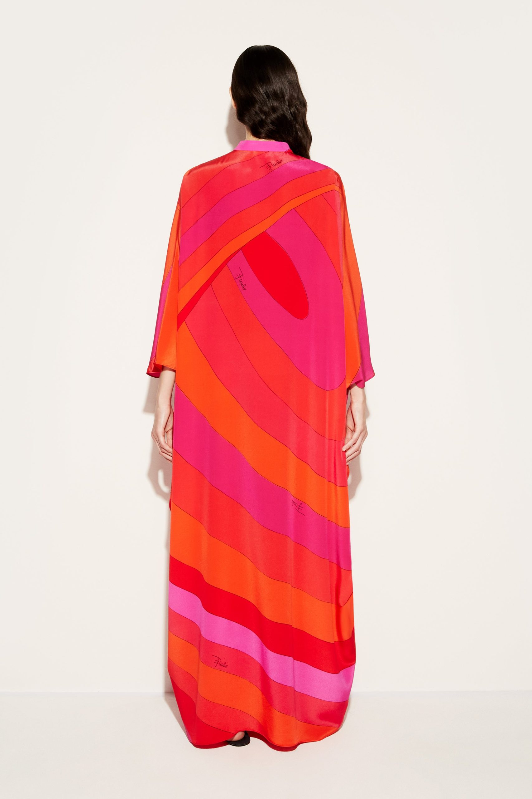 Inspired by the elliptical shape of the eye’s iris, the Iride print wraps this kaftan in concentric stripes. It’s cut from silk crêpe de chine to a billowing silhouette and strung with gold-tone intertwining fish charms at the self-ties.
