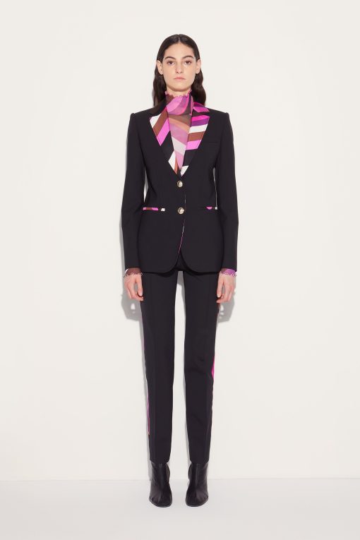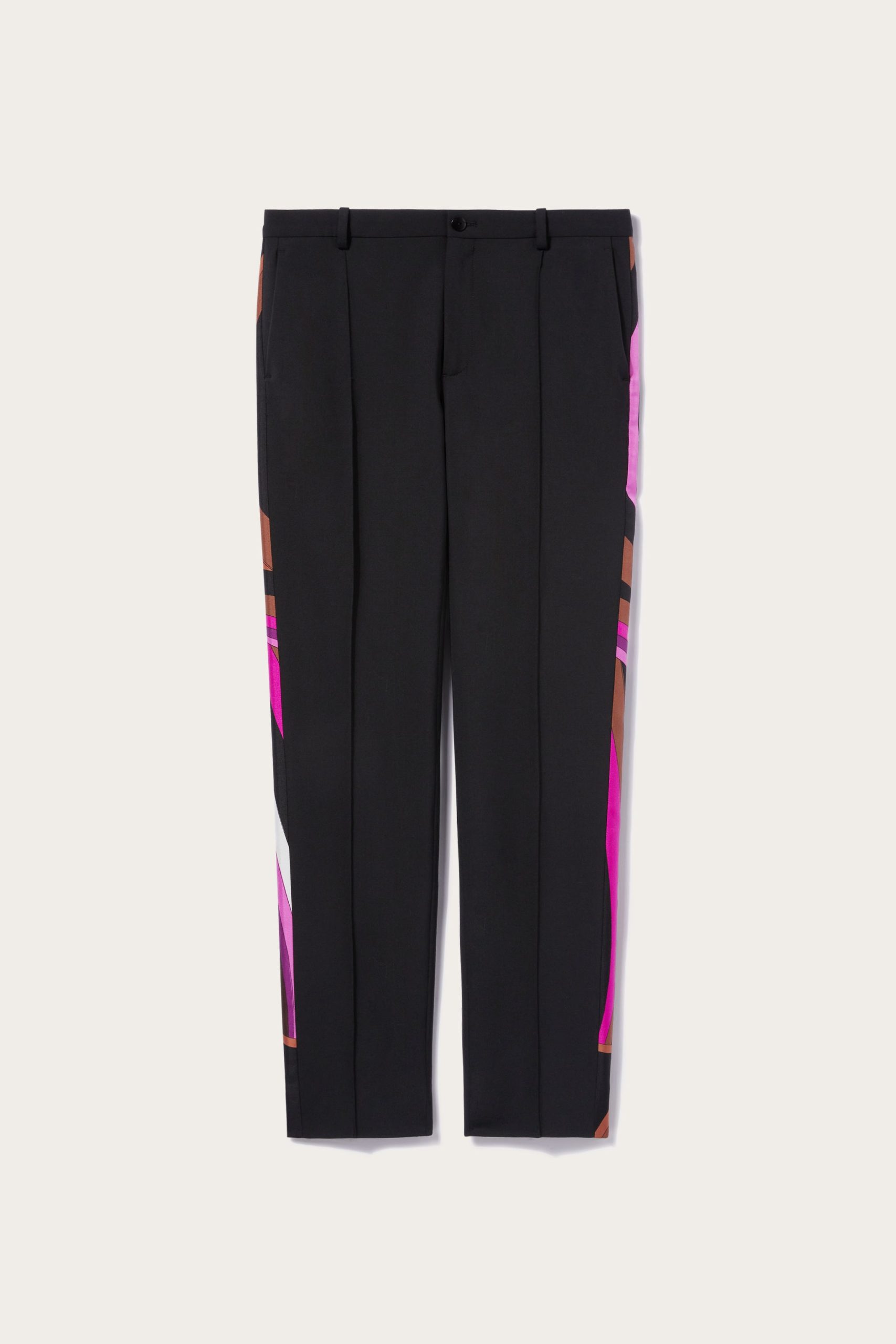 Camille Miceli showcases Pucci’s tailoring prowess with these tapered trousers, which are expertly cut from stretch-infused virgin wool. The richly-hued Iride-print side stripes lend them an energetic touch.